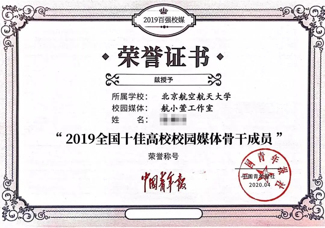 2020年,北航“航小萱工作室”获评“2019年度十佳高校媒体”。