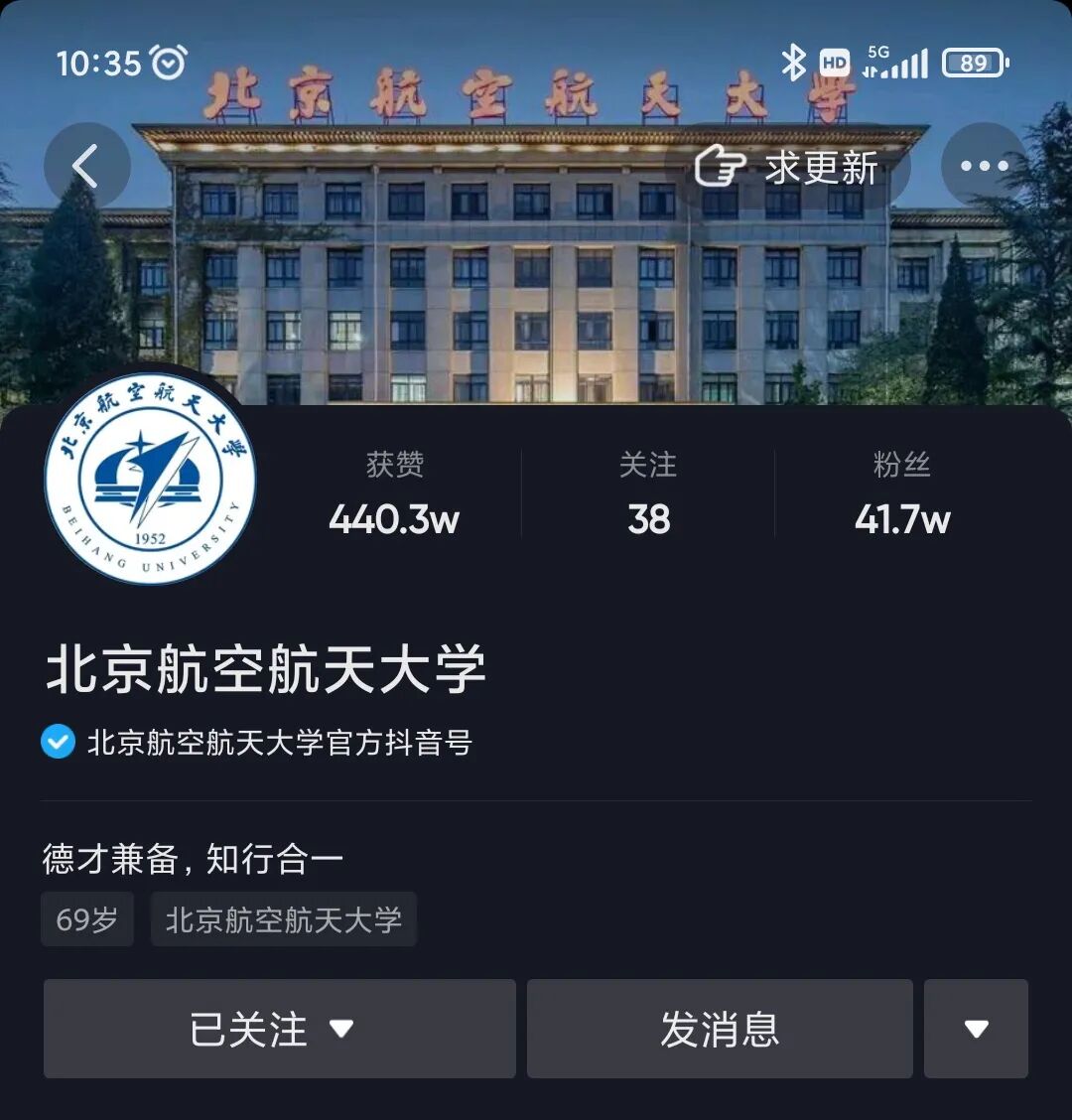 北航官方抖音账号自建立以来