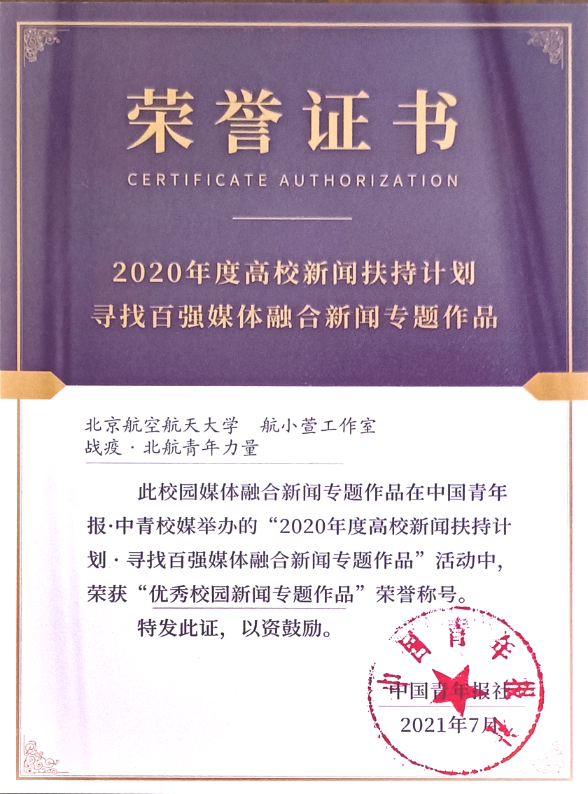 2021年,北航“航小萱工作室”获评“2020年度十佳高校媒体”。