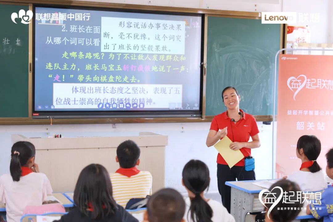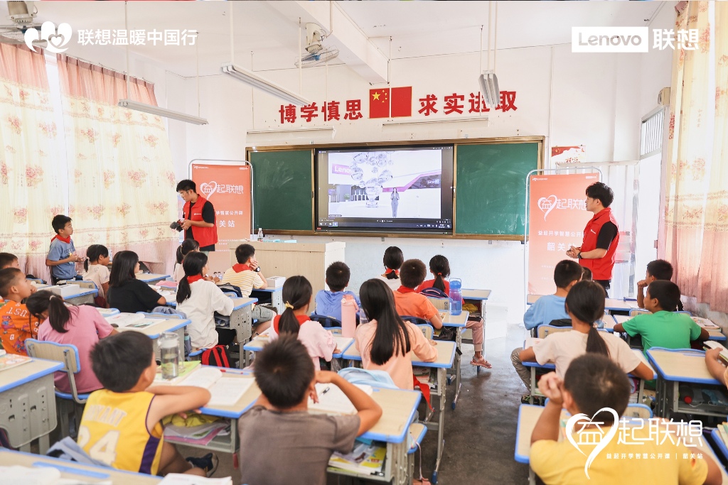 这是联想心系乡村振兴,助力教育公平,在南雄当地进行公益捐赠的一个瞬间特写,这个教师节,希望小学的老师们,一下子成了当地智慧教育的先行者,带领学生进入奇妙的智慧学习场景中——对了,让师生们难忘的这堂课,就叫“同一个课堂——益起开学智慧公开课”。