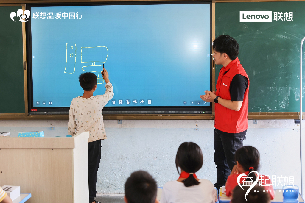 为了办好南雄的乡村小学智慧教育试点,联想向界址大坊金城希望小学捐赠了智慧大屏,搭配4K高清摄像头和全向拾音器,呈现可常态化的远程同步课堂,让优质教育资源共建共享。联想还提供了对应的智慧教室解决方案,着力从“教”与“学”两个环节,推动金城希望小学的教育信息化变革,形成了“云+设备+软件+内容”的综合性解决方案。