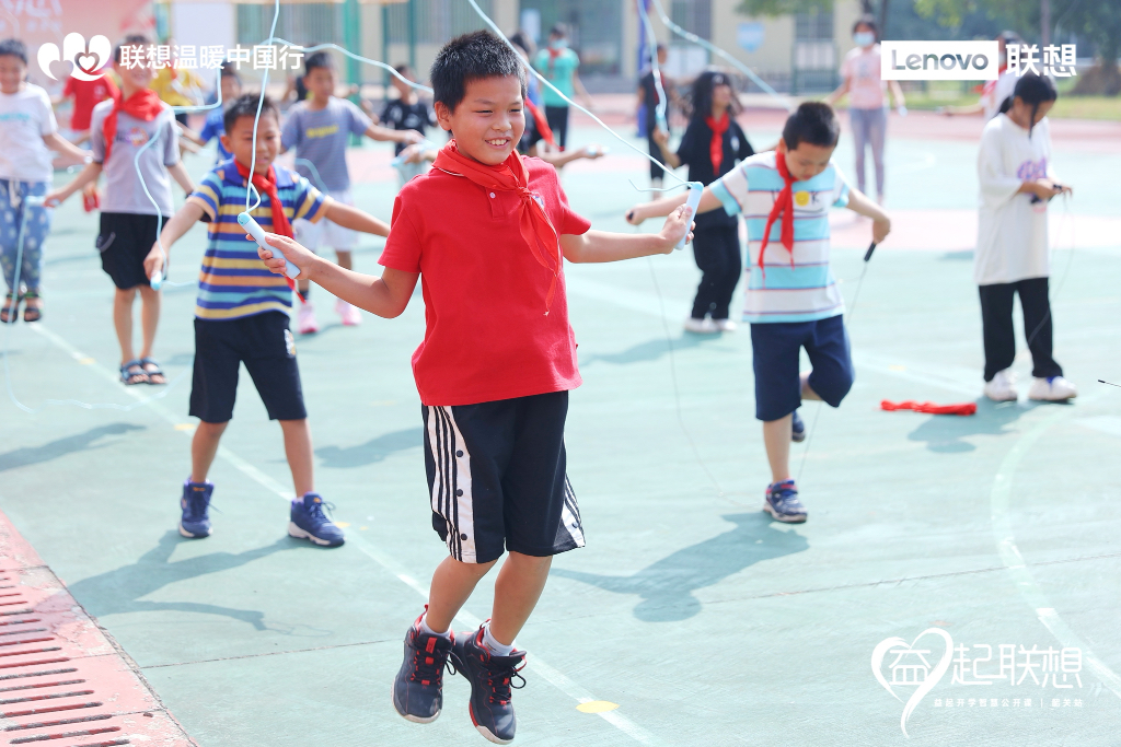 联想集团还捐赠了100套爱心包裹,内有书包、天骄智能跳绳等文具用品,助力学生们在素质教育全面发展。
