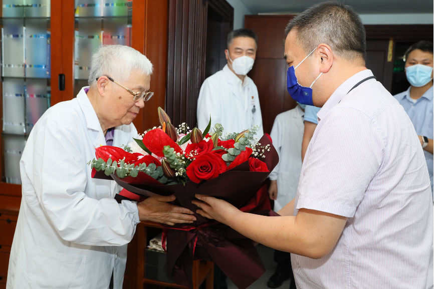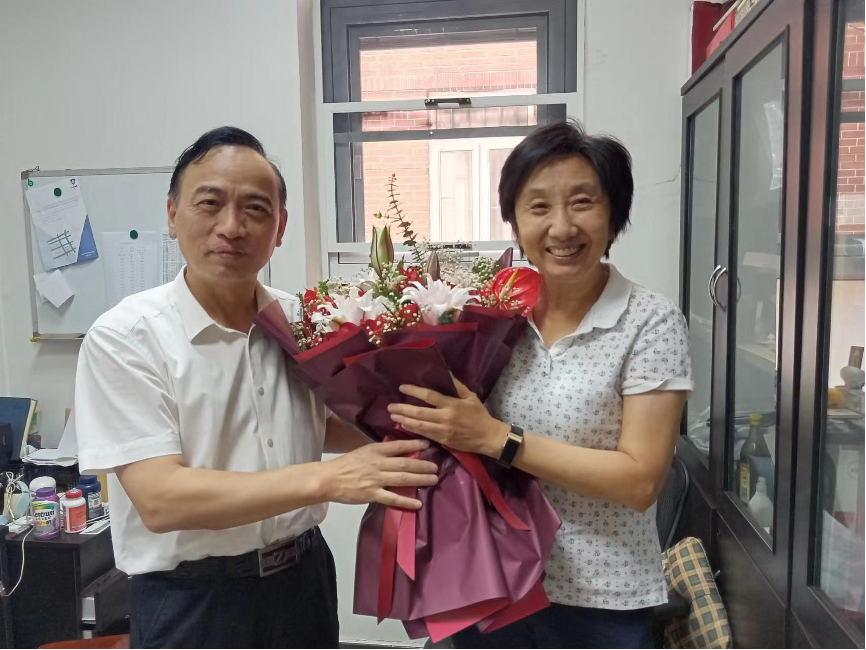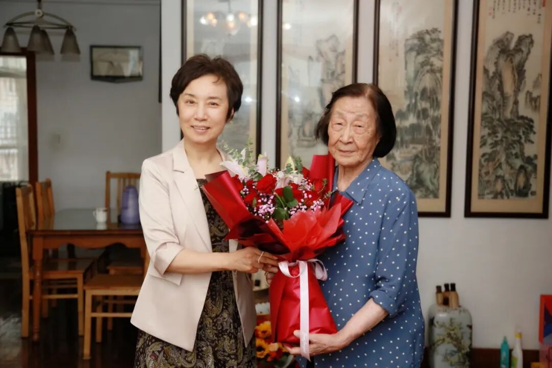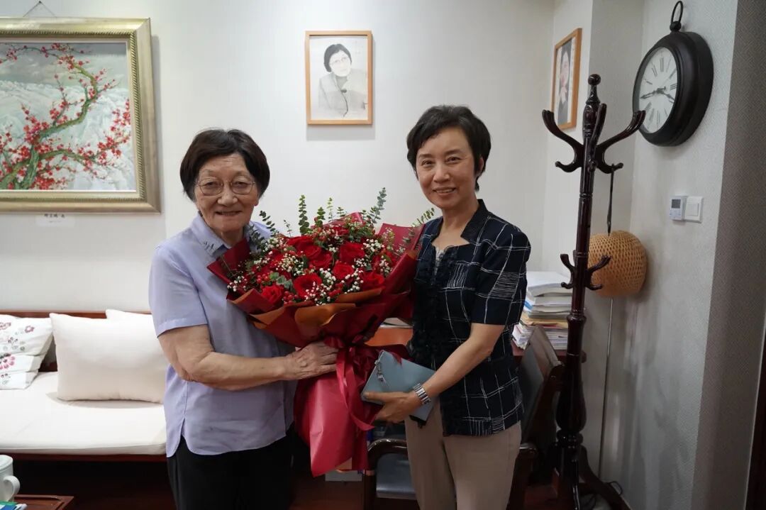 焦扬来到位于枫林校区复星楼四楼的闻玉梅院士办公室,向闻院士致以节日的祝福和亲切的问候。焦扬关切询问了闻院士的生活和身体状况,向她多年来为祖国医药卫生事业以及学校医学教育发展作出的重要贡献表示感谢,并嘱咐闻院士保重身体。