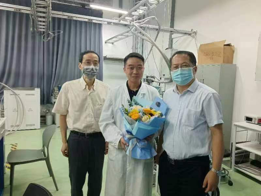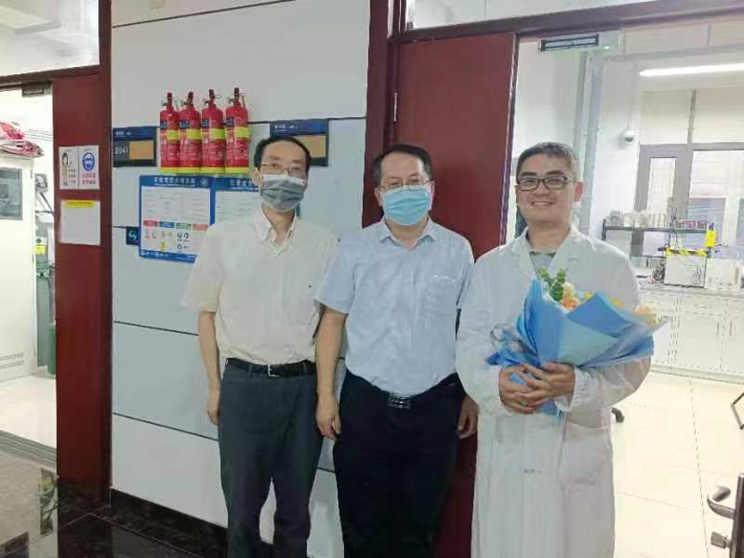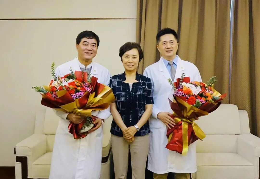 焦扬慰问葛均波(左一)、樊嘉(右一)
