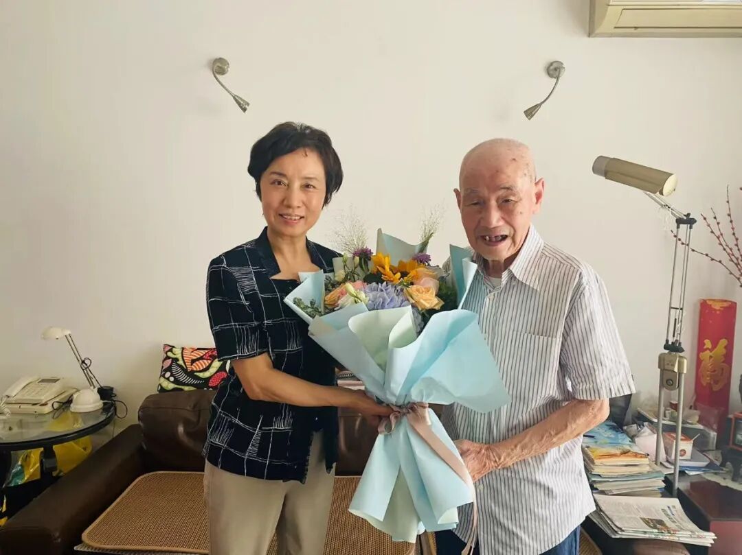 焦扬来到曹沛霖教授家中,献上鲜花并向他致以节日问候。这位精神矍铄的教授今年已90岁高龄。日前,他因“对改革开放后中国政治学学科恢复与发展尤其是比较政治学研究等领域作出重大贡献”荣获上海市第十五届哲学社会科学优秀成果奖学术贡献奖。