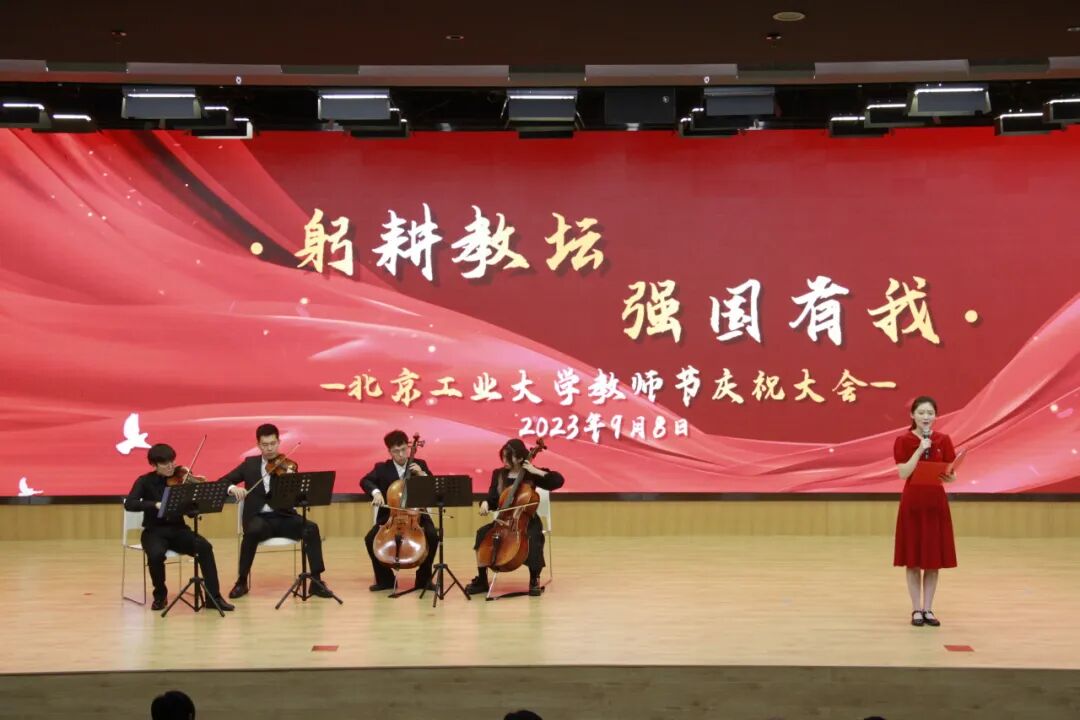 9月8日下午,在第39个教师节即将来临之际,“躬耕教坛 强国有我”2023年北京工业大学教师节庆祝大会召开。校领导班子成员,受表彰人员,从事教育工作满三十年教职工,教学名师、青年教师、学生代表参加会议。