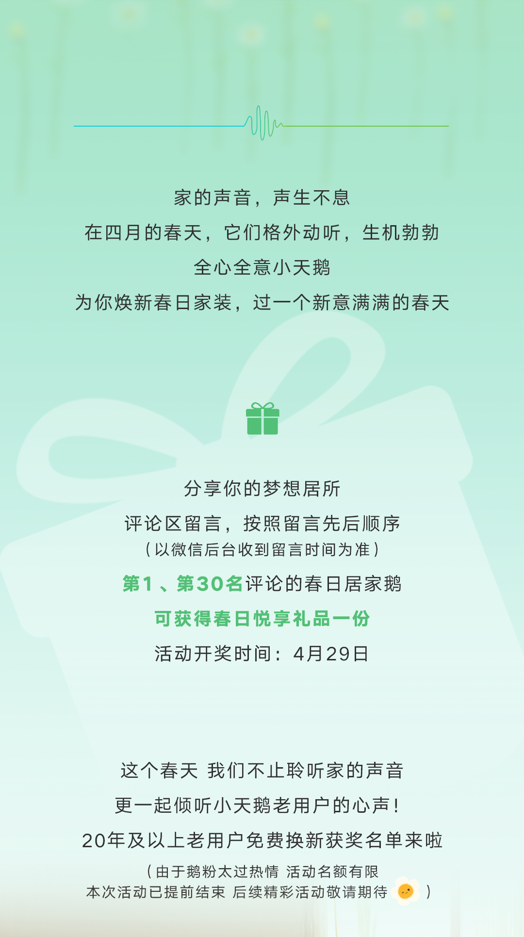 推荐:全心全意小天鹅通过「点击展开」展示家中产品,吸引大家一起来聆听家的声音,借此宣传全心全意小天鹅家具,吸引大家前往购买。