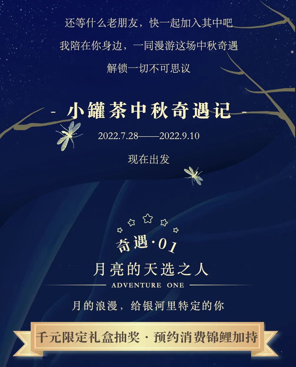 推荐:「点击」跟上玉兔,「展开」小罐茶中秋奇遇记的活动介绍,吸引更多客户购买月饼礼盒和当季鲜花窖制茶。