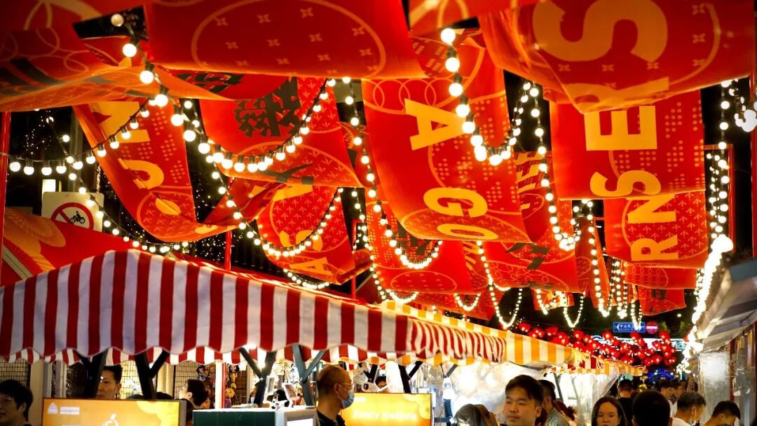 在过去的周末,来到外滩枫径的小伙伴或许已经发现,集市呈现了一副和往日不同的面貌,红红的灯笼和布旗装饰,将外滩都映成团圆的红,在夜晚更是美不胜收。