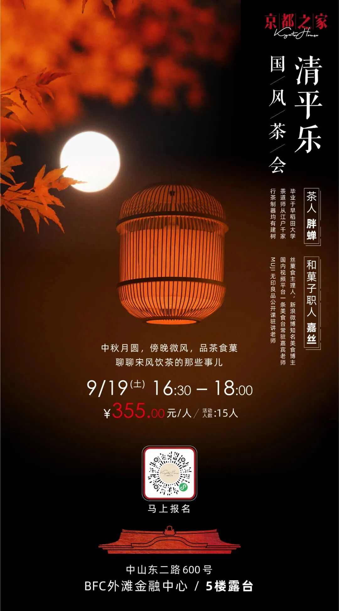 活动流程:茶道讲座-宋式点茶体验-答疑交流-露台赏月