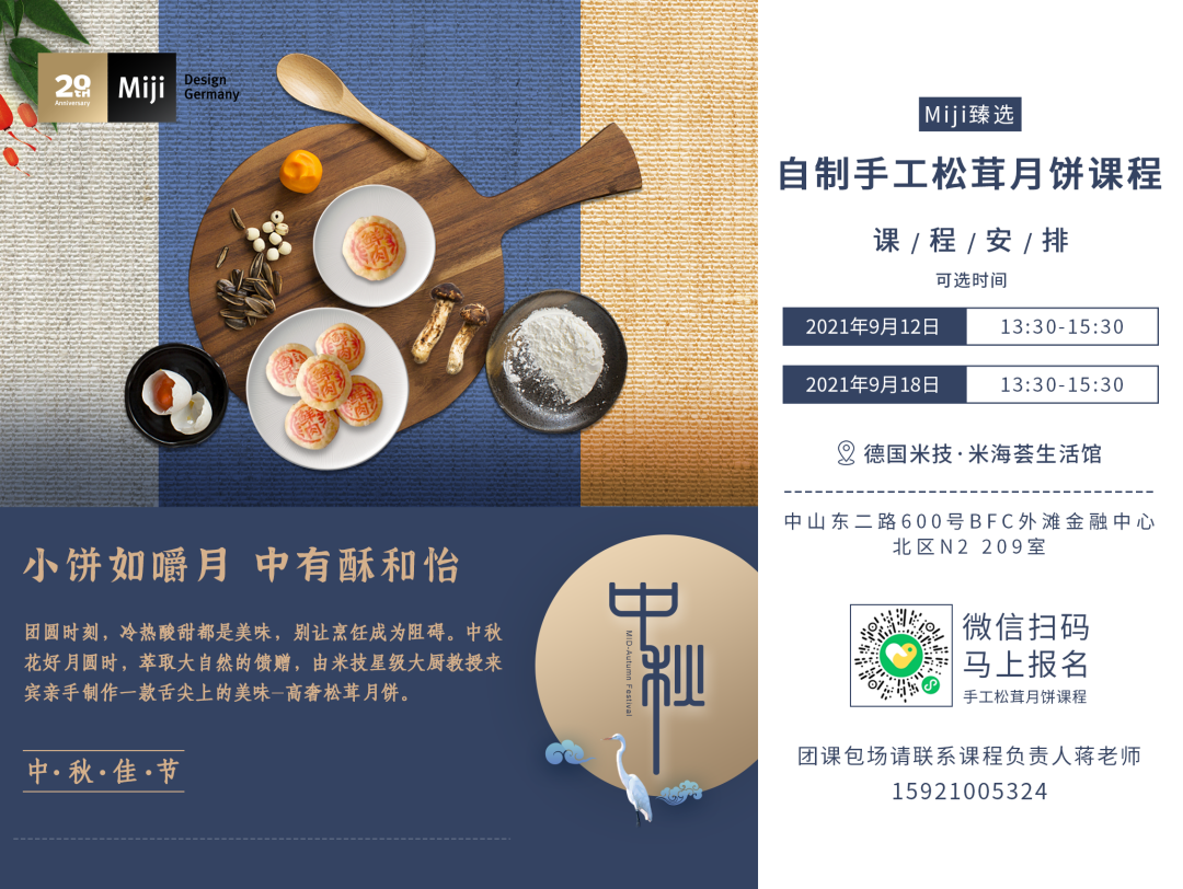 同样推出手工月饼制作活动的还有德国专业的厨房厨具品牌Miji米技,自制松茸月饼也是格调满满,没有尝试过的小伙伴,在中秋节带几个自己亲手做的月饼送给亲朋好友,太有意义了。