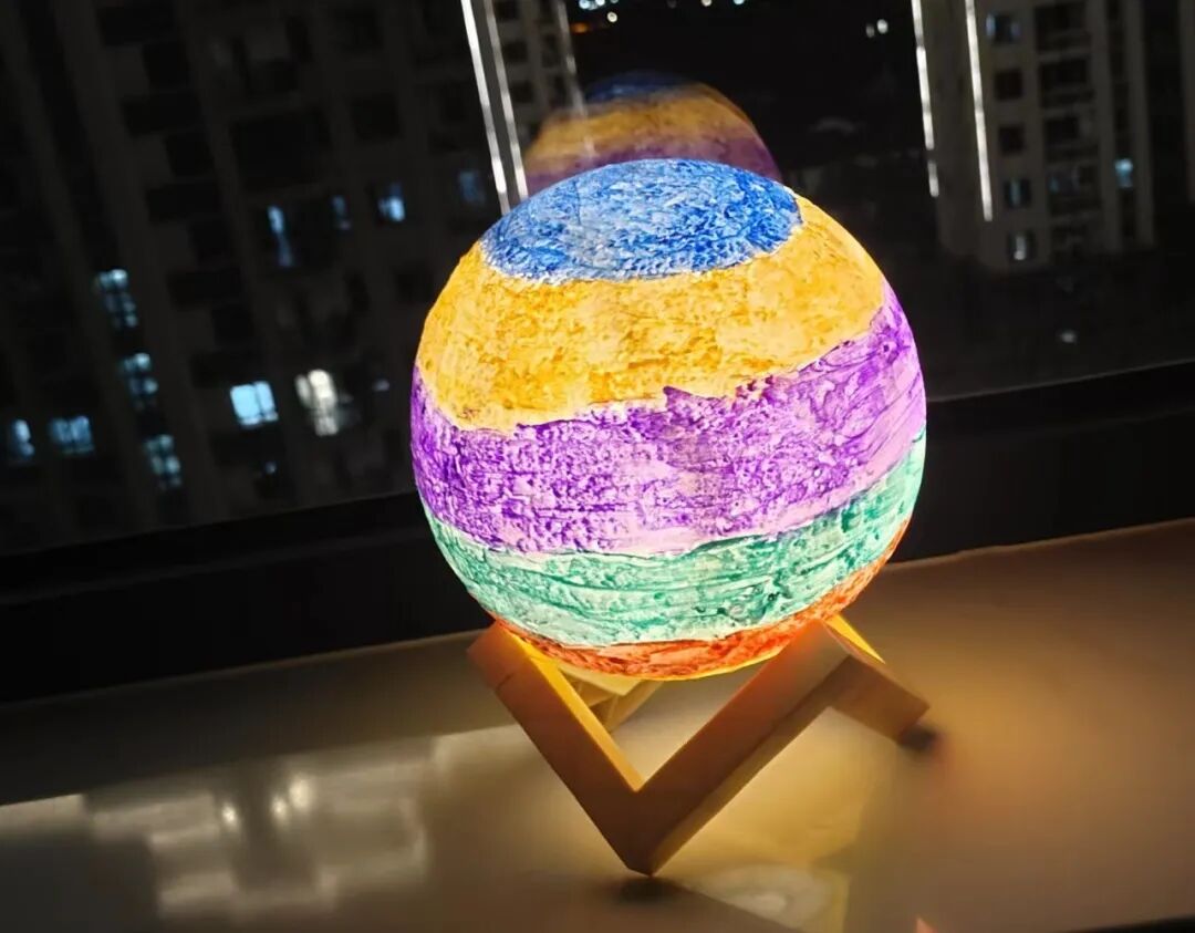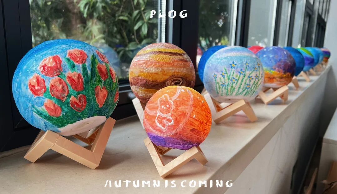 当然,月亮一向清高孤冷的悬挂于夜空,可望而不可及,所以我们想尽力,只为创造出独属于我们自己的月亮,和浪漫撞个满怀。面对一个个月球灯,大家拿起画笔,画下的是一个个五彩的星球,画下的是内心美好的寄托,画下的是对未来无限的向往。