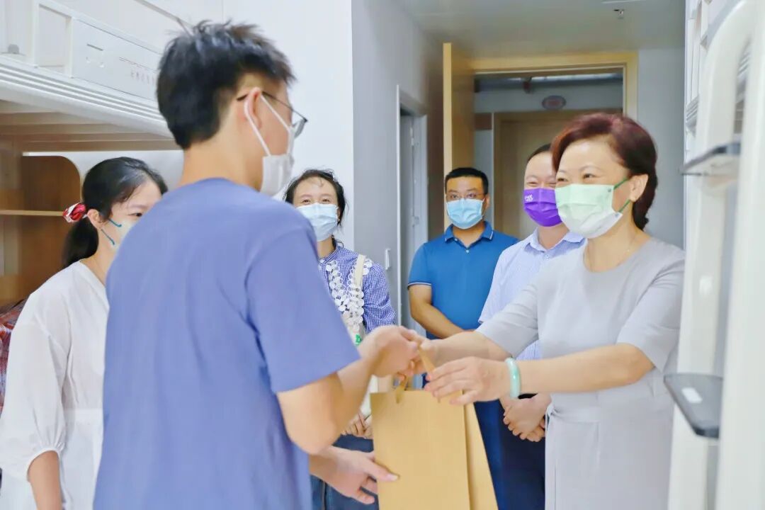 9月9日,中秋节、第38个教师节前夕,学校党委书记、政府督导专员高华锦,党委副书记、常务副校长童精明,副校长杨莉,党委副书记、副校长王亚军,副校长陈刚,校长助理张昊深入基层和学生寝室,看望慰问在岗的教职员工和留校学生。