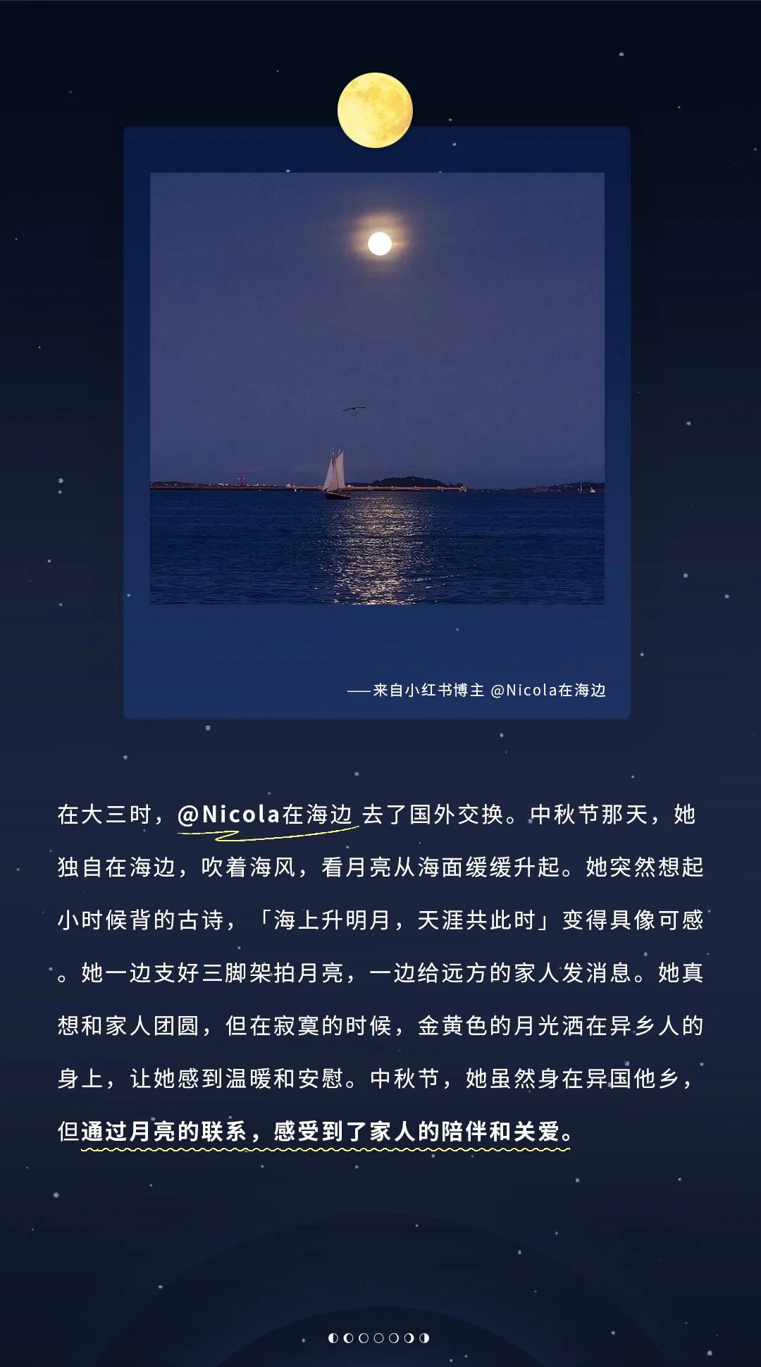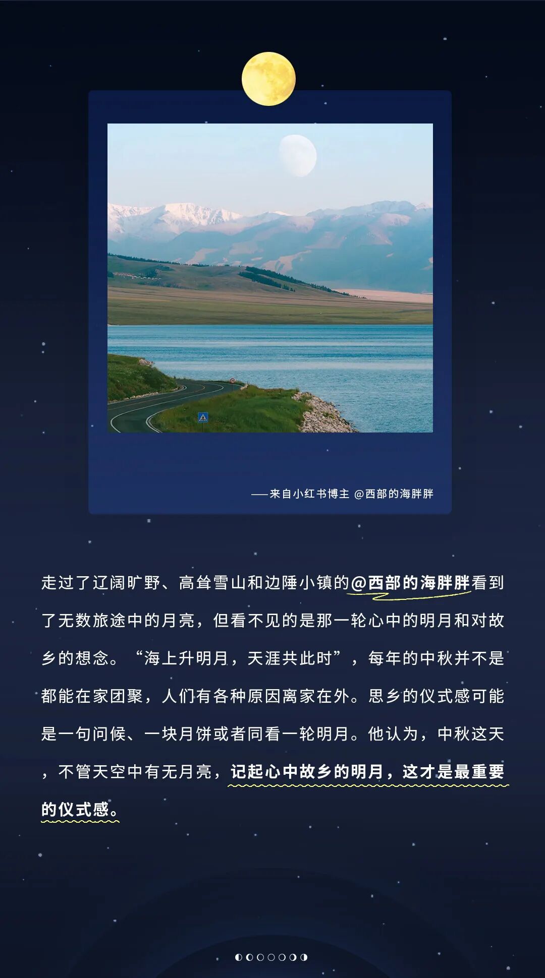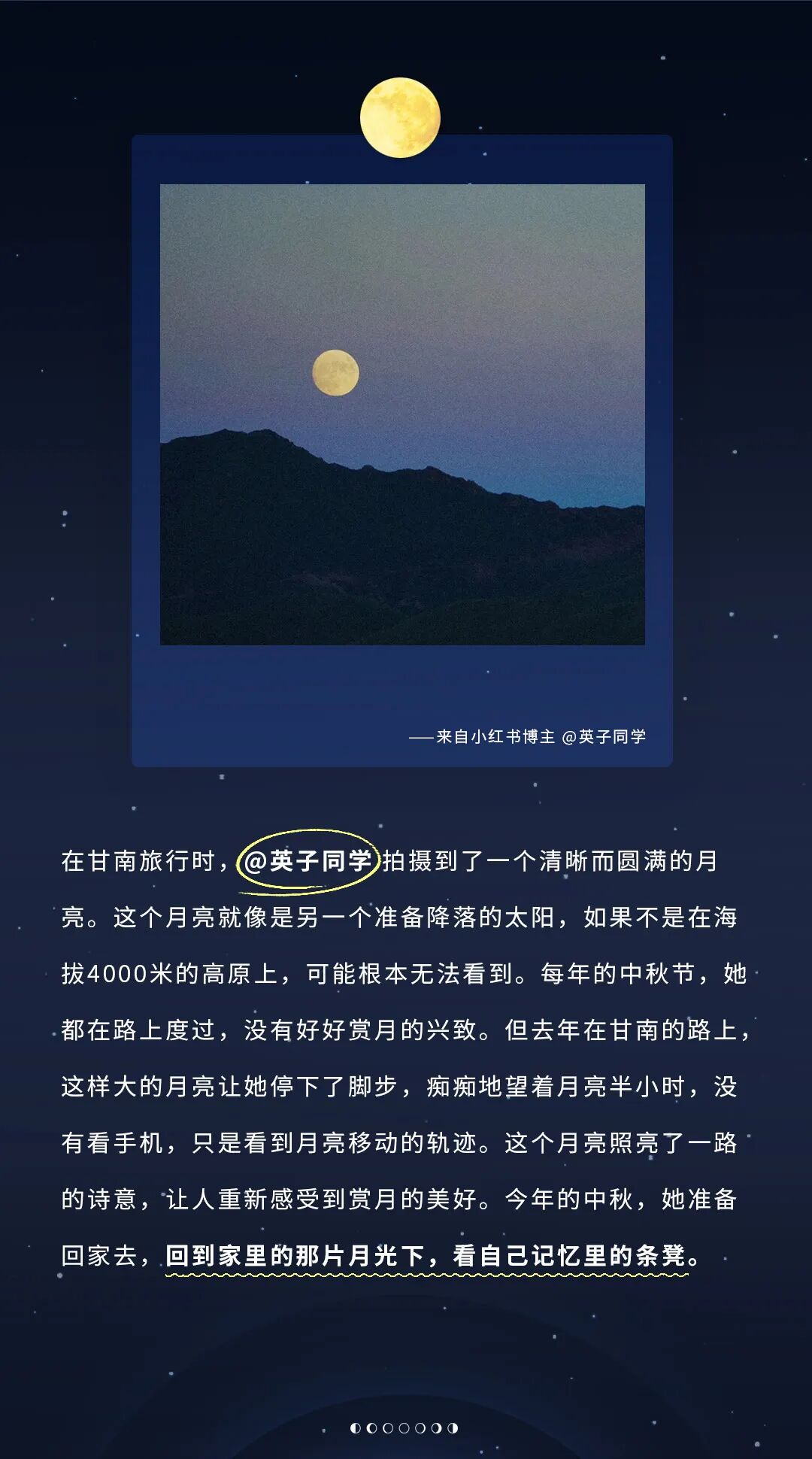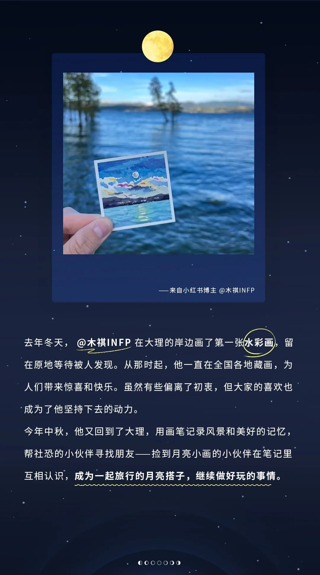 推荐:「自动播放月亮美景后从头展开」我和我的月亮搭子活动,「差速上滑」模拟翻阅相册展示部分小红书笔记内容,「左滑」并「点击弹出」图中礼物背后的小红书博主寄语,借此宣传小红书App,吸引读者前往下载使用。