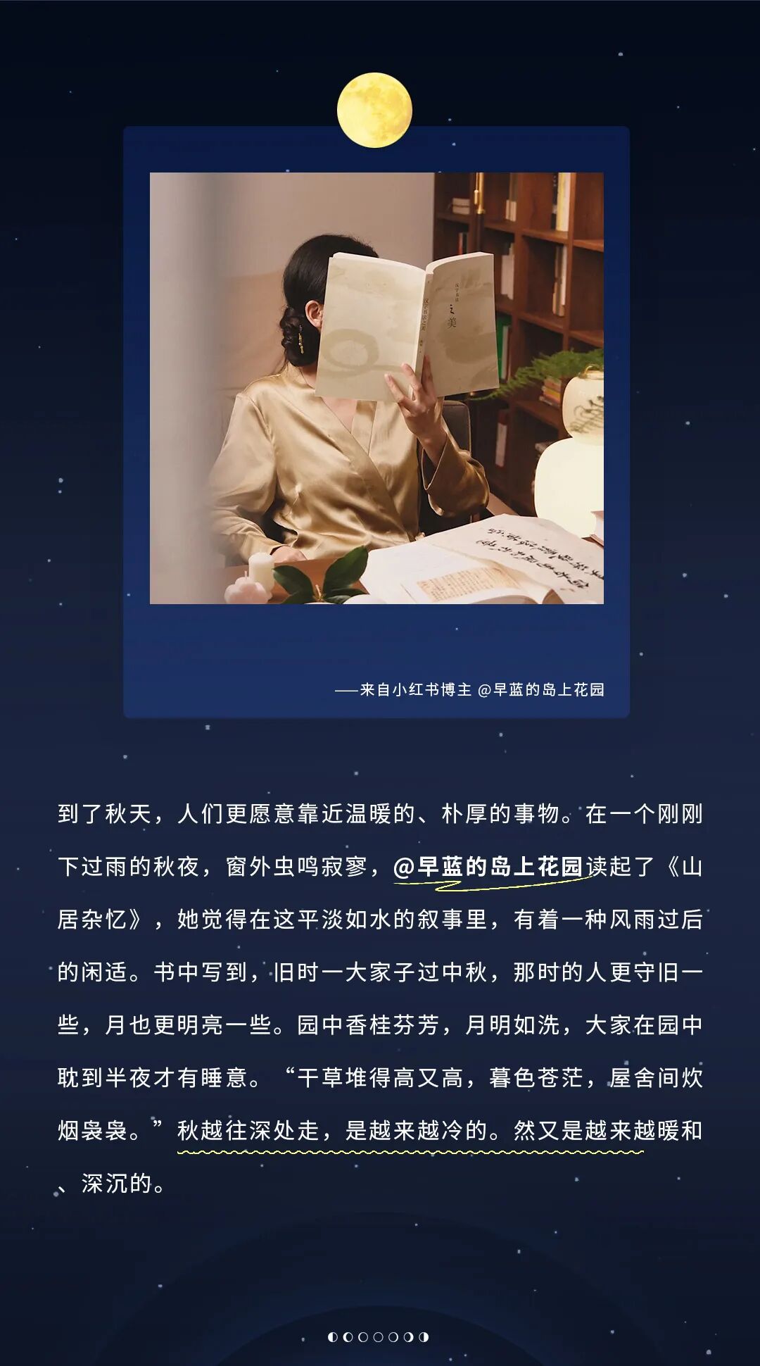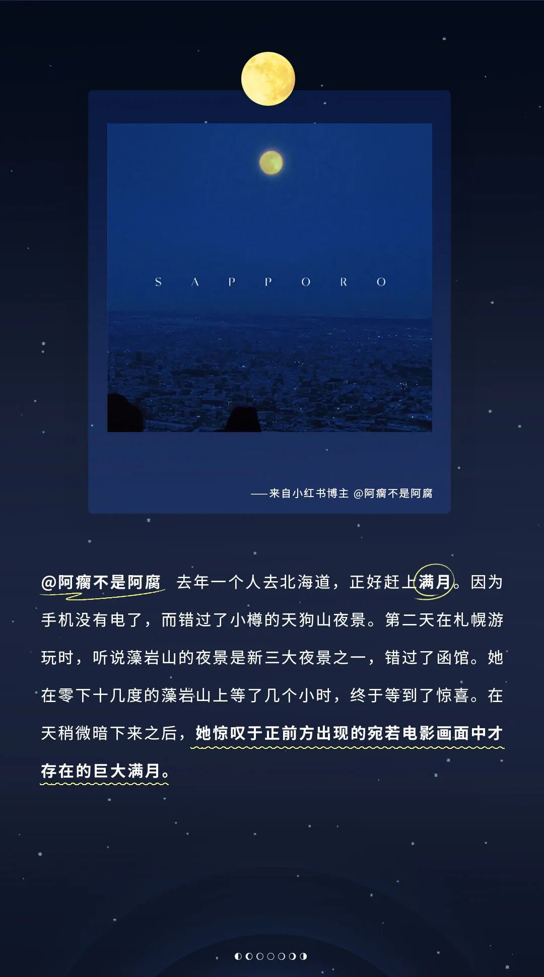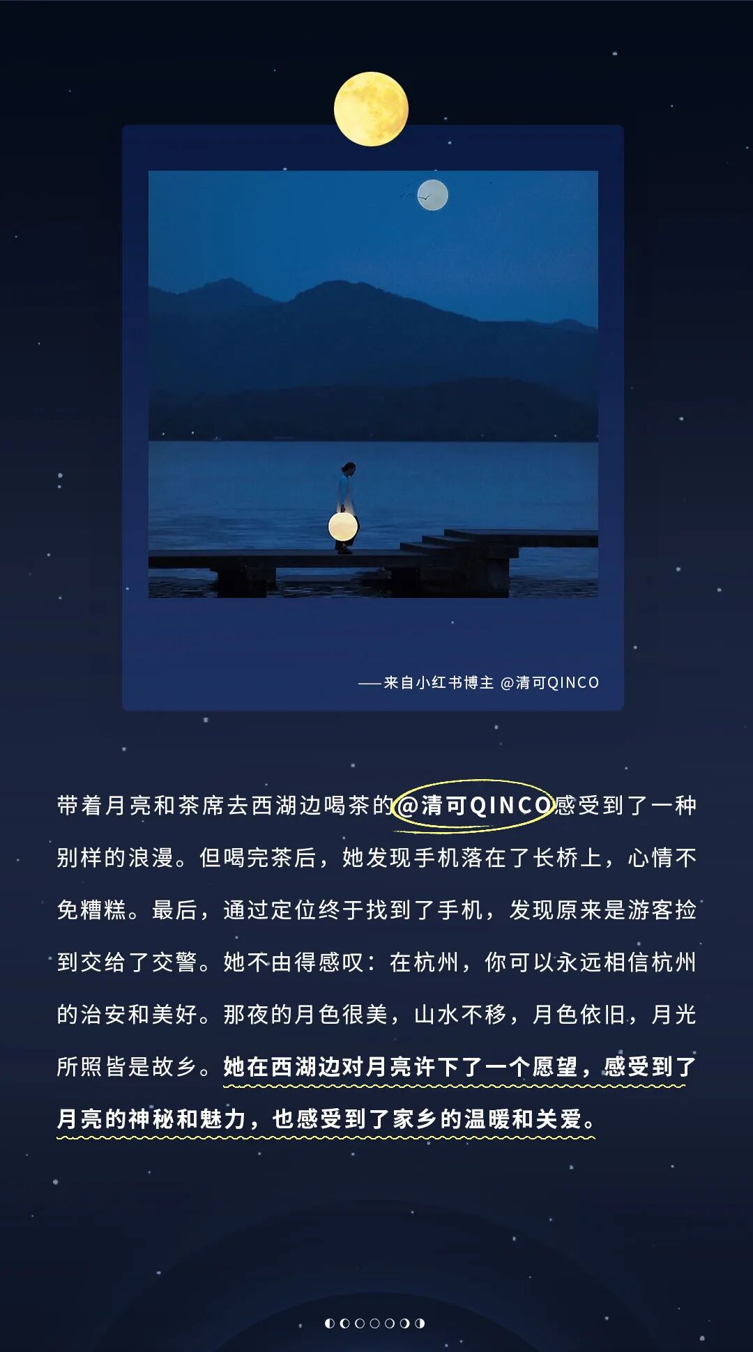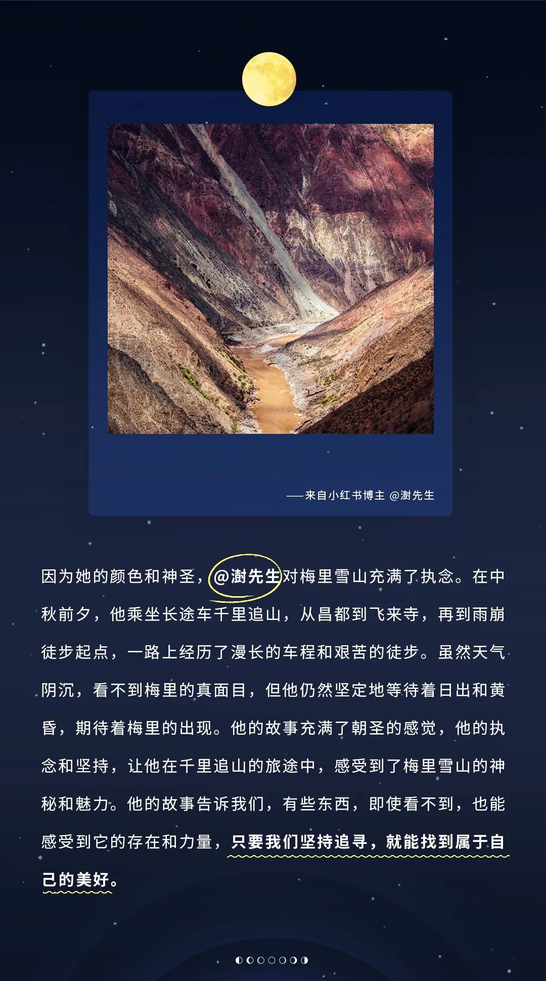推荐:「自动播放月亮美景后从头展开」我和我的月亮搭子活动,「差速上滑」模拟翻阅相册展示部分小红书笔记内容,「左滑」并「点击弹出」图中礼物背后的小红书博主寄语,借此宣传小红书App,吸引读者前往下载使用。