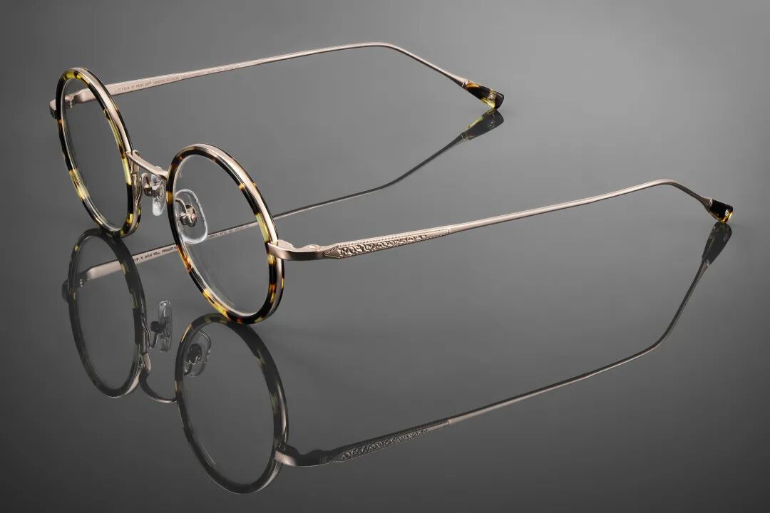镜架采用珍贵瞩目的实心 18K 玫瑰金或白金铸造,配以品牌为溥仪眼镜特设的标志性玳瑁色醋酸纤维圆形前框。LOTOS 标志性的手工艺术雕刻首次呈现于AcetGold系列的镜腿之上,更以玳瑁色醋酸纤维打造全新脚套并镶以小白钻,瞩目而璀璨。