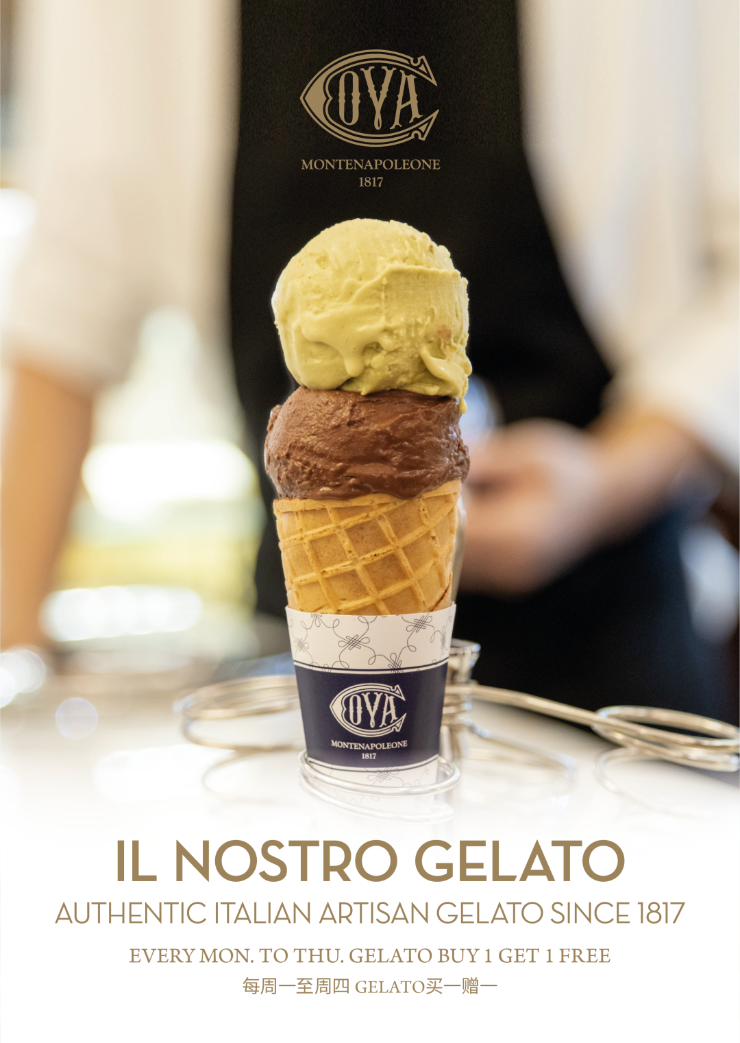 来自意大利米兰的百年甜品品牌COVA,夏日GELATO买一赠一活动现已开启,即日起每周一至周四,莅临COVA新天地店,任意GELATO买一赠一,赶紧约上闺蜜亲朋,一起分享这份夏日甜蜜吧~COVA新天地店期待您的莅临。