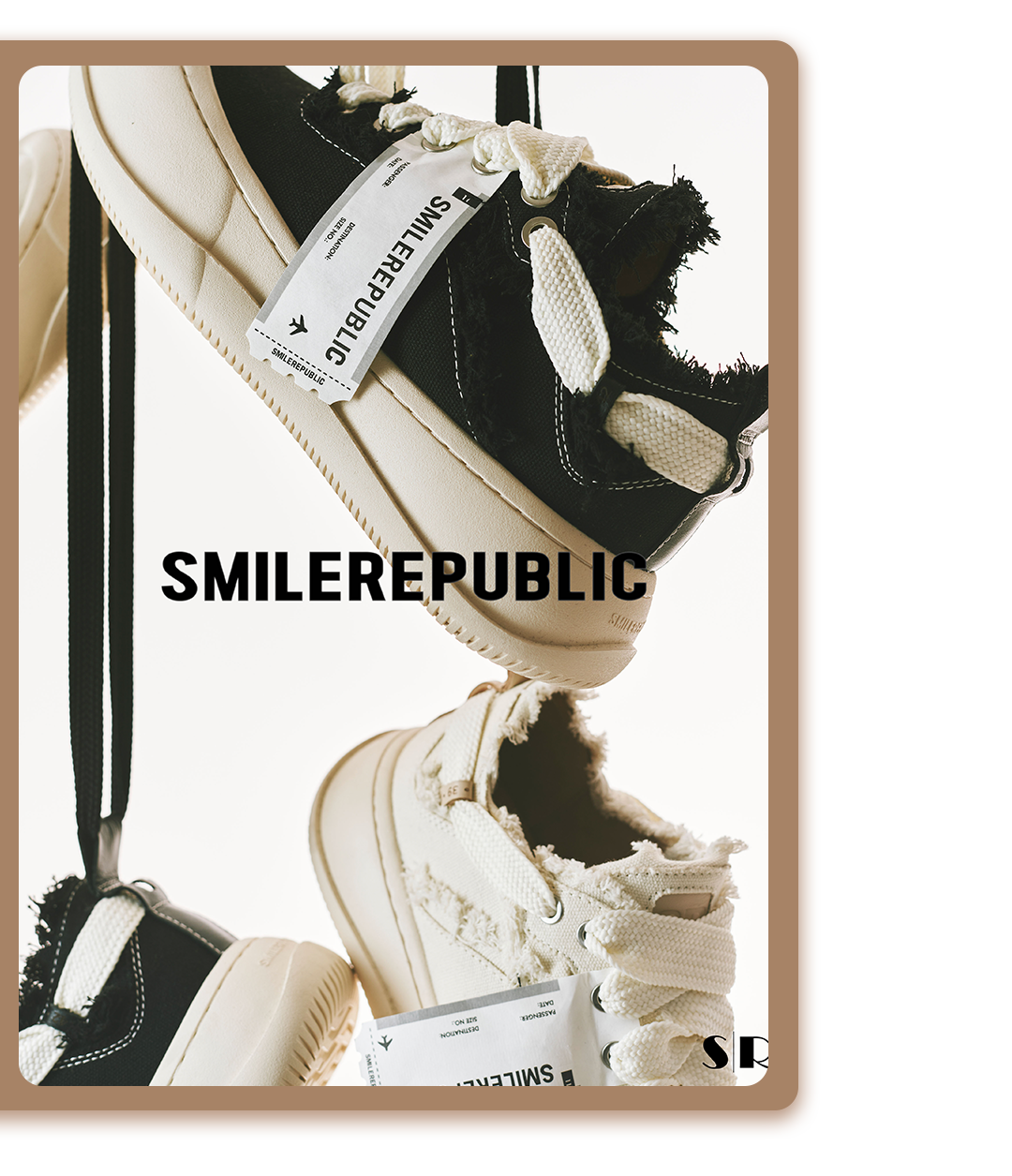 飞机标、反系的蝴蝶结、鞋头可替换的“开口笑”装置,成为了 SMILEREPUBLIC最经典的三大元素。最终做到了百搭舒适,显腿修长,且更显高的SMILEREPUBLIC鞋款。