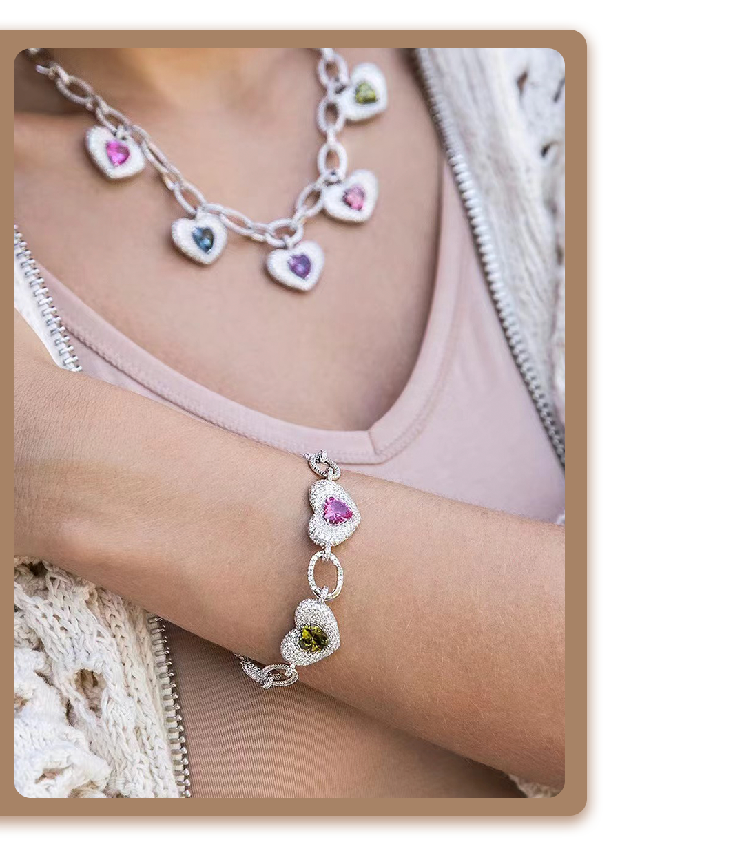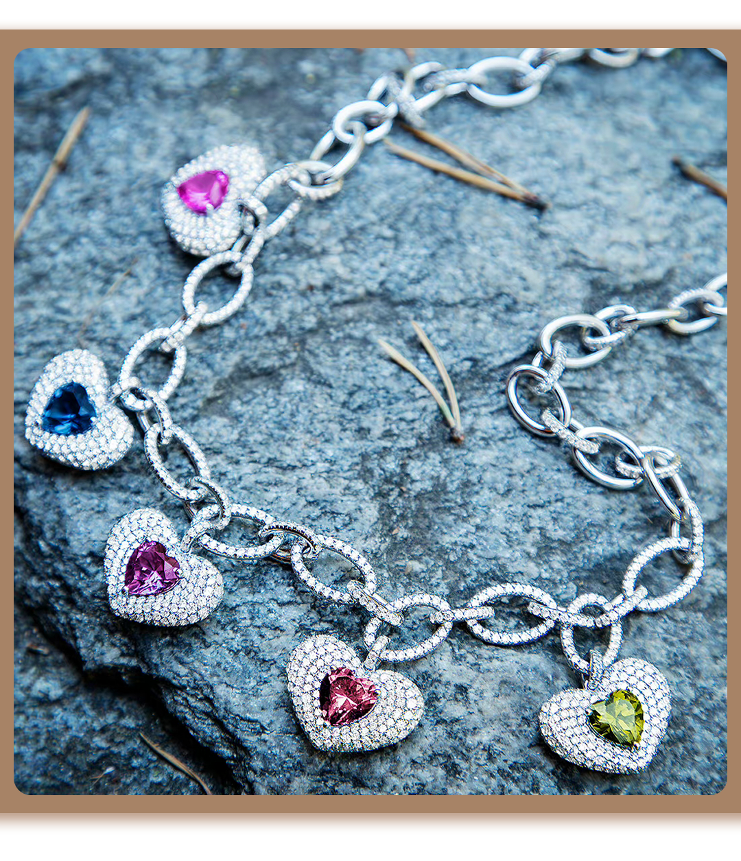 炫彩宝石融入经典爱心造型,将璀璨宝石与硬朗链环巧妙融合,彰显无性别主义美学,演绎多面时尚风貌,同时亦珍藏着甜蜜爱意,让浪漫常伴身侧。
