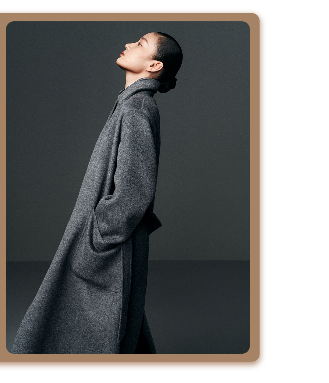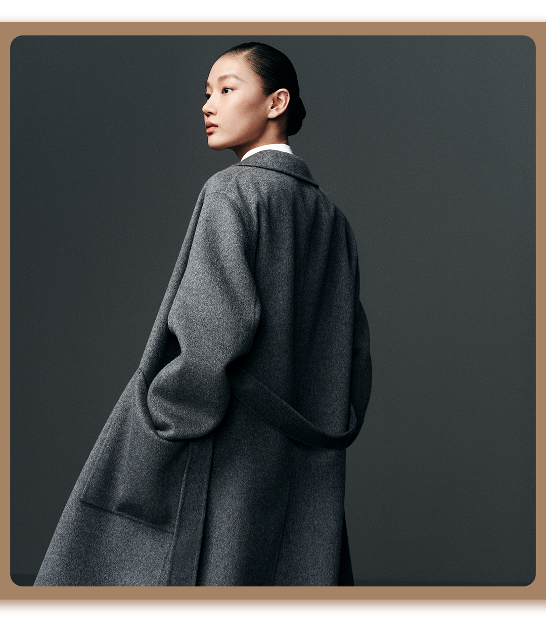选用极致灰720克羊绒双面尼中长款大衣,冬日能很好的锁住温度,抗寒保暖又显瘦。整体视觉有骨感不软塌,立体裁剪挺阔有型,日常通勤可搭配西裤或牛仔裤都能穿搭,尽显高级与率性。