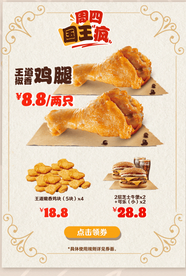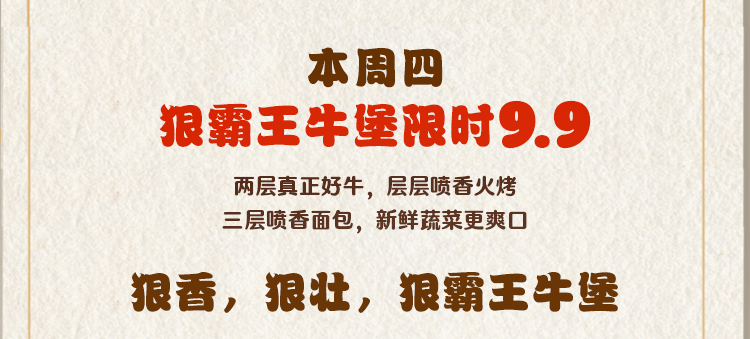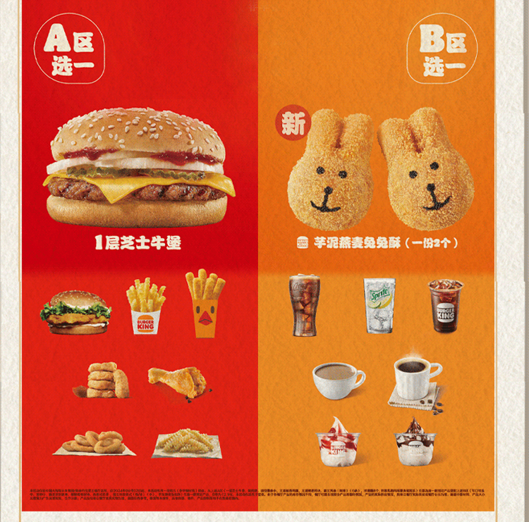 *非外卖渠道价格解释:图示如有划线价格,并非指原价,而是指不参加优惠活动情况下该产品在汉堡王指定门店销售的常规价格(或者指其中所含单品的常规单买价总和)或汉堡王门店建议零售价。除非图示另有解释,否则图示如有节省的金额或折扣比例,是与不参加优惠活动情况下在汉堡王指定门店单独购买该产品的常规价格(或者其中所含单品的常规单买价总和)或汉堡王门店建议零售价相比较。若需要查询当前门店销售的常规价格,可查看相应门店菜单或详询店员。