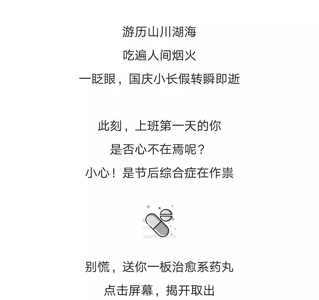 推荐:「点击切换」模拟打开治愈系药丸的方式治疗节后综合症,最后组成距离下个假期的时间,借此宣传英菲尼迪。