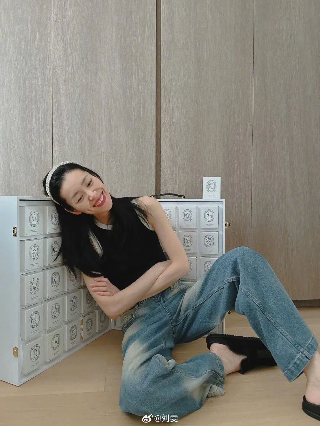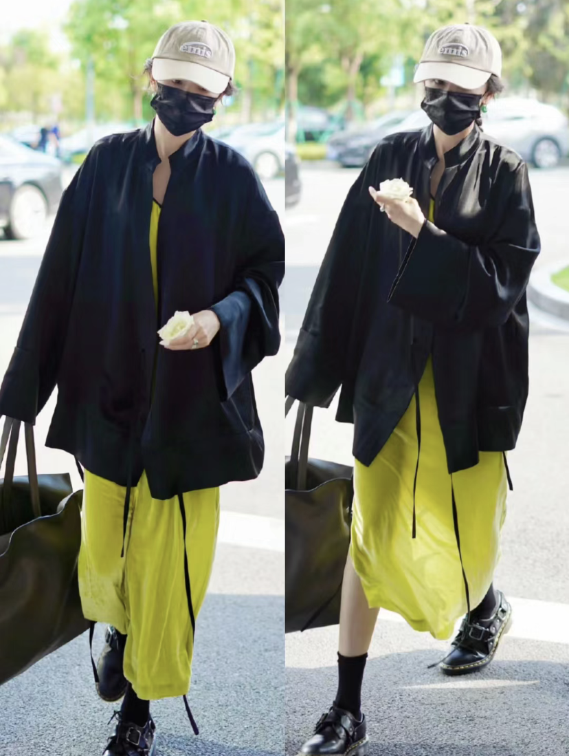 除了刘雯以外,吉娘娘的穿搭也很值得借鉴。简单的黑白蓝配色穿搭舒适养眼,让人看着是在放飞心态地进行养老生活。