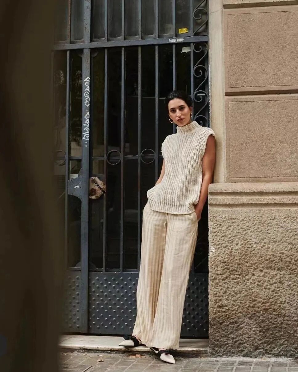 除了轻柔的治愈性色调,亲肤舒适的天然质感面料也是构成Clean Fit穿搭的要素。