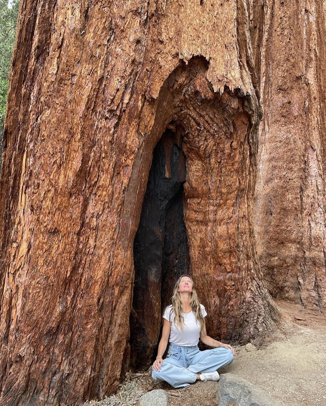 回到家乡的Gisele Bündchen,就准备好好地回归自然来放松一下自己,在她最近po出的日常分享中,经常可以见到她在自然中运动、静坐,穿着也是最舒适不过的Clean Fit,显然更专注于自身。