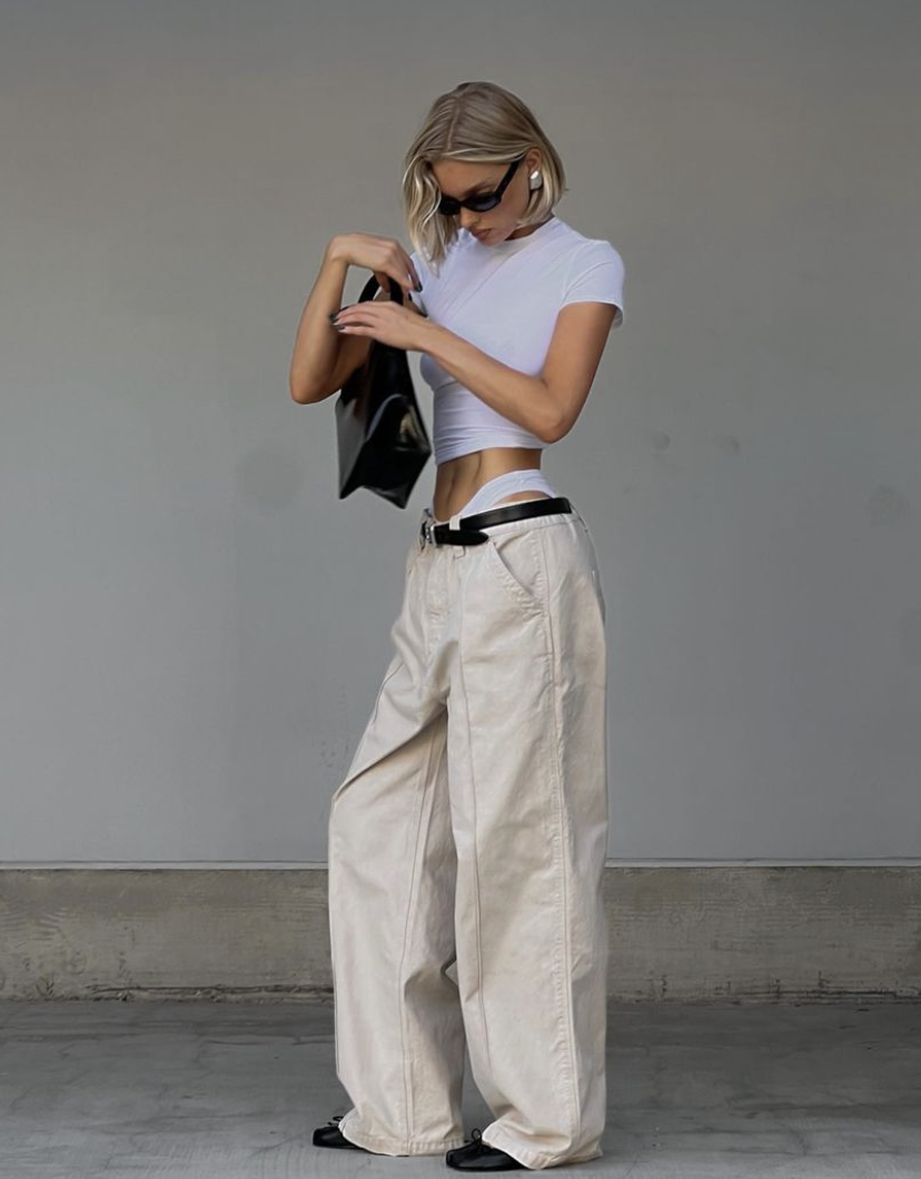 大家熟知的两位Clean Fit风格博主Anouk Yve和Kelsey Merritt,穿的衣服就很符合这一波“放稳心态”的审美,她们身上没有繁复的搭配方式,一切以轻盈简洁为主。