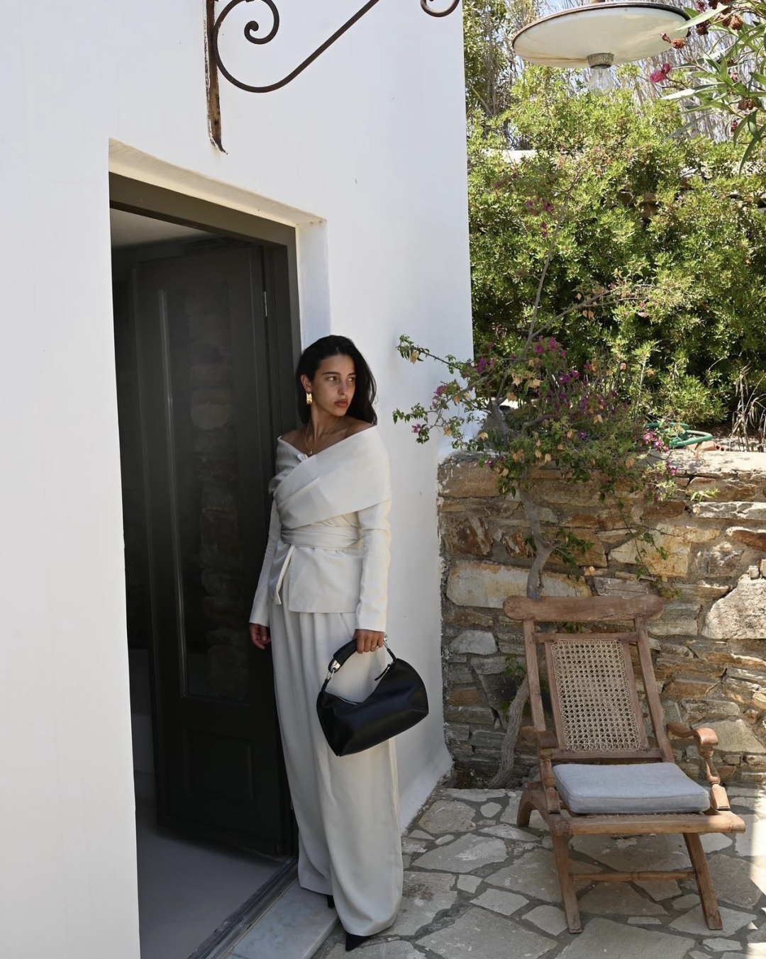 与刚才提到的鞋履一样,包包也是度假搭配的灵魂。明快的秋日,可以选择明快的米黄色系、清新的蓝色,或是美拉德色系手袋,点亮整个穿搭。