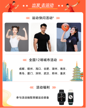 荣耀运动快闪活动覆盖成都、赣州、海口等在内的全国12座城市,现场设置摸高挑战、跳绳挑战、瑜伽等众多休闲类运动项目,消费者参与即有机会抽取荣耀手表4、荣耀手环7等支持多种运动模式、具备超长续航的运动装备大奖,以及精美伴手礼,助你假期化身运动大人,休闲健康两相宜。