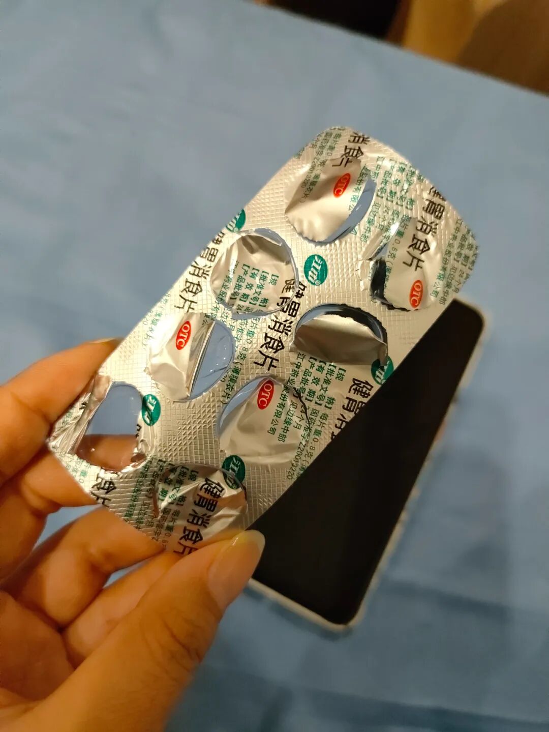 因为每次吃饭都吃的太饱了,干脆买了一大盒健胃消食片,每次吃完就来几粒,五天就吃完了~