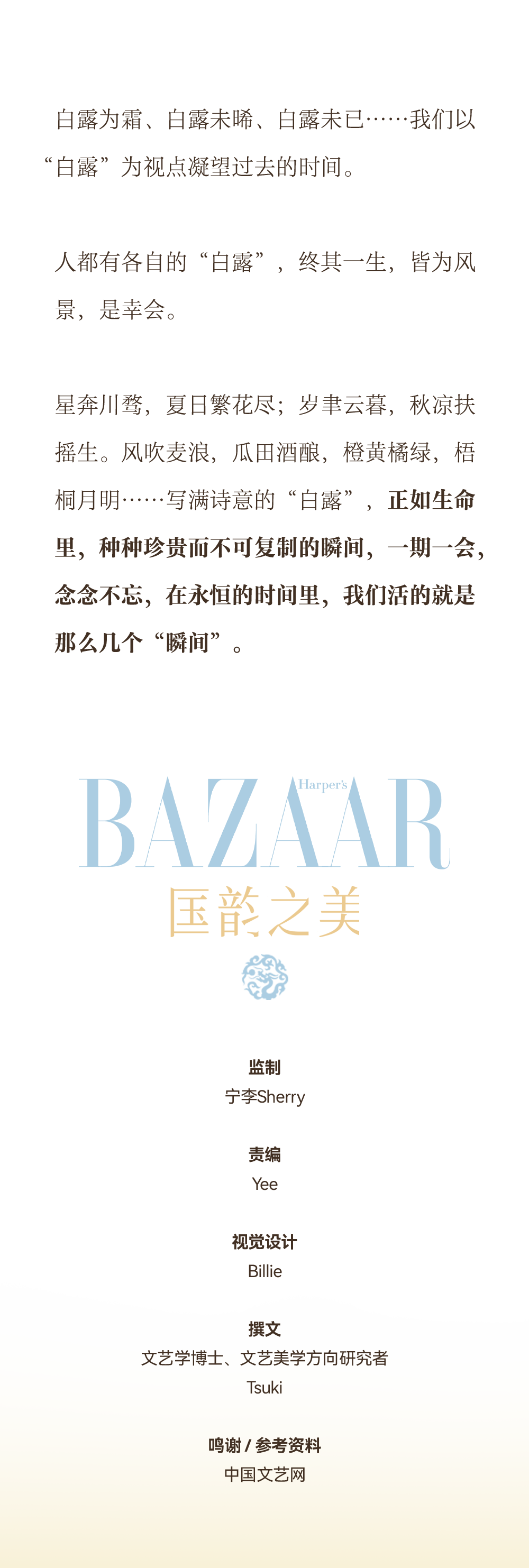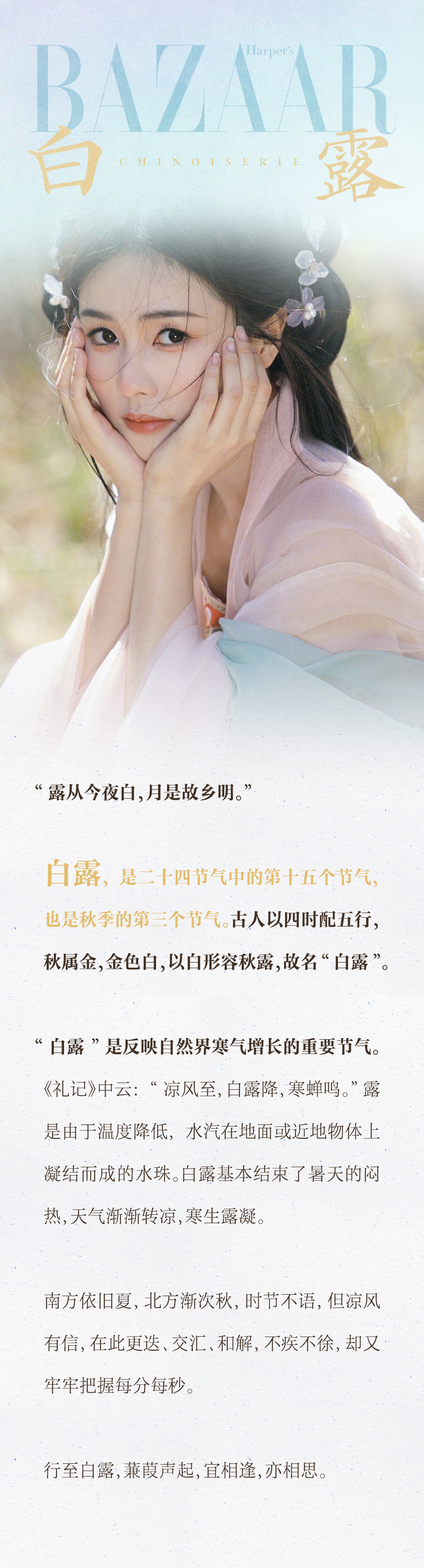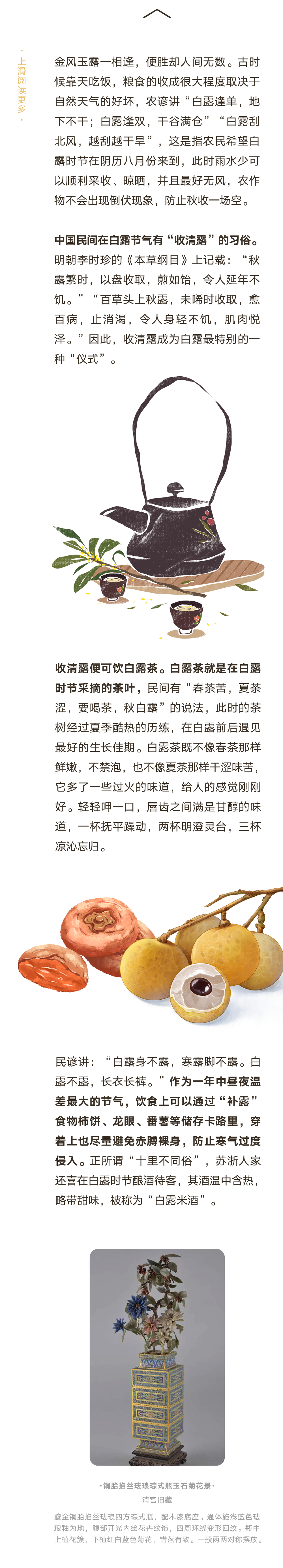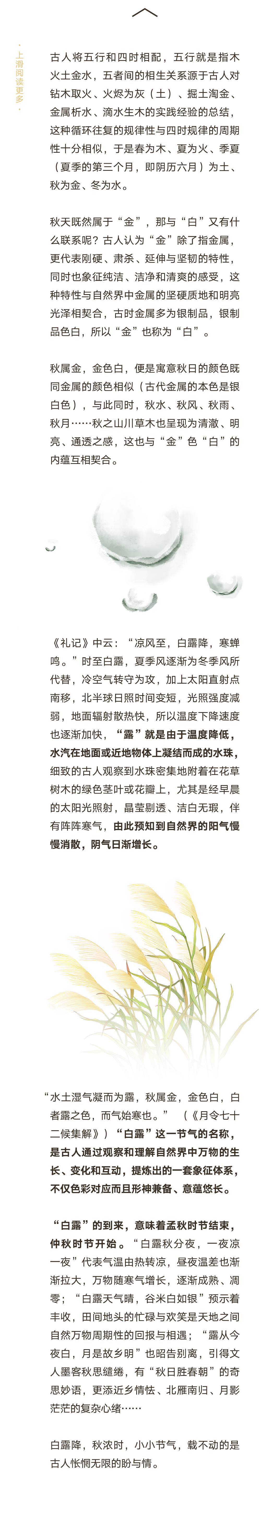 推荐:「点击展开」介绍白露这个节气的内涵,「上滑」查看更多白露节气习俗,借此宣传时尚芭莎的国韵之美专栏。