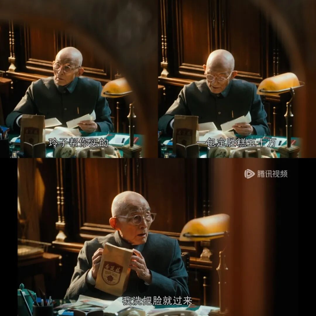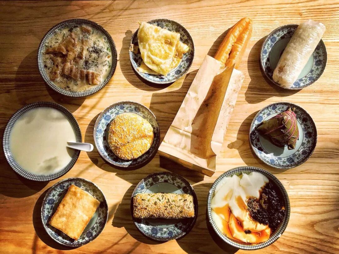 宝总泡饭、汪小姐、葛老师同款“四大金刚”(大饼、油条、粢饭、豆浆)、爷叔“一包五十万”的定胜糕、范总的油墩子