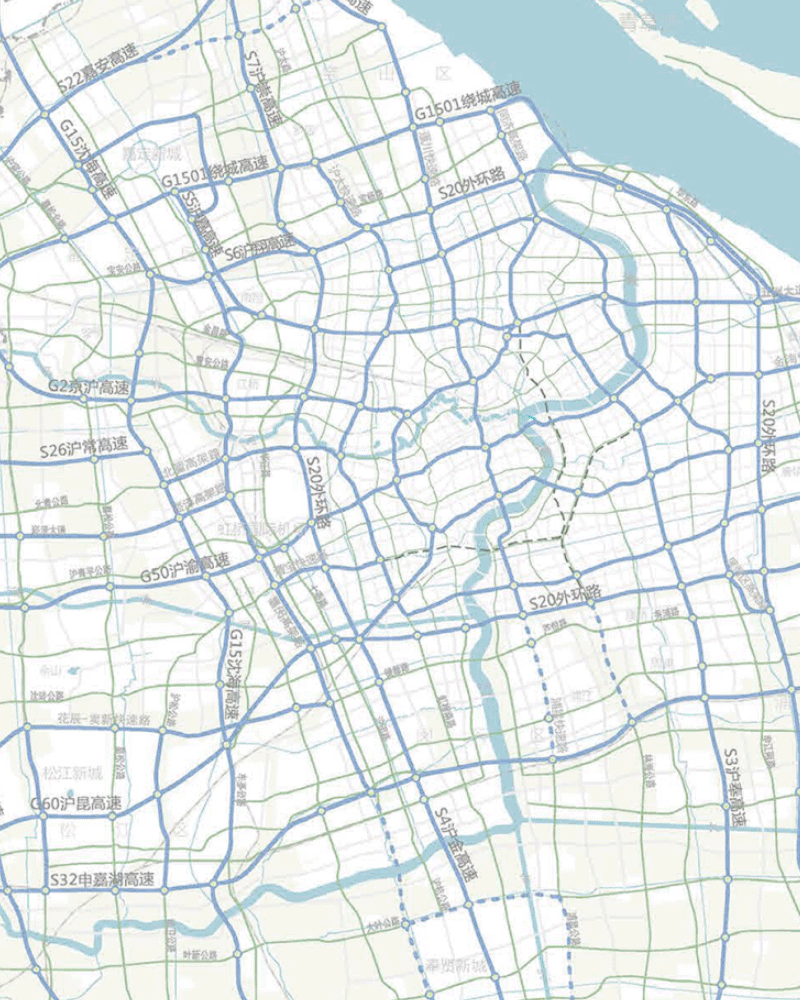 景观照明的总体布局为“一城多‘新’,五带多点”。“一城”指主城区,“多‘新’”指五个新城及崇明城桥、金山城区。