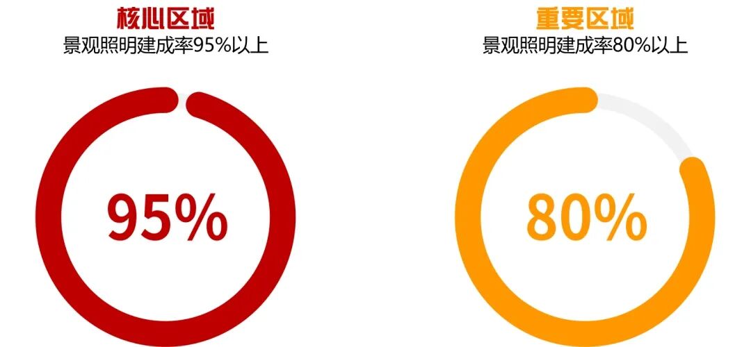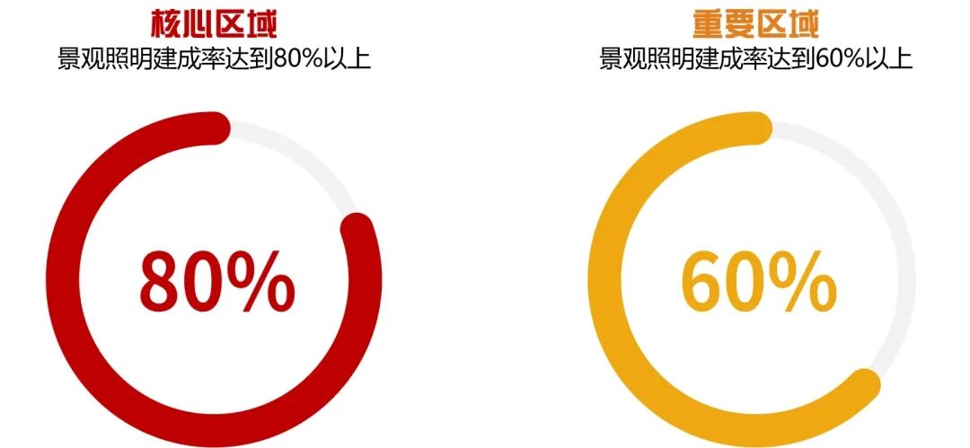 至2035年,景观照明建成率核心区域达到95%以上,重要区域达到80%以上,实现景观照明碳达峰。