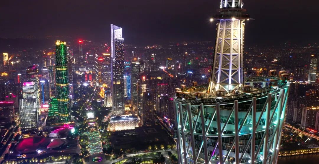 广州塔娉婷玉立在广州城的新中轴线上,珠连起一座座具有新时代风采的地标建筑群落,耀映着羊城人民的美好生活。