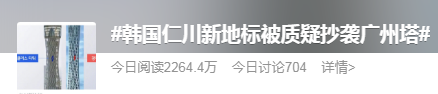 #韩国仁川新地标被质疑抄袭广州塔#