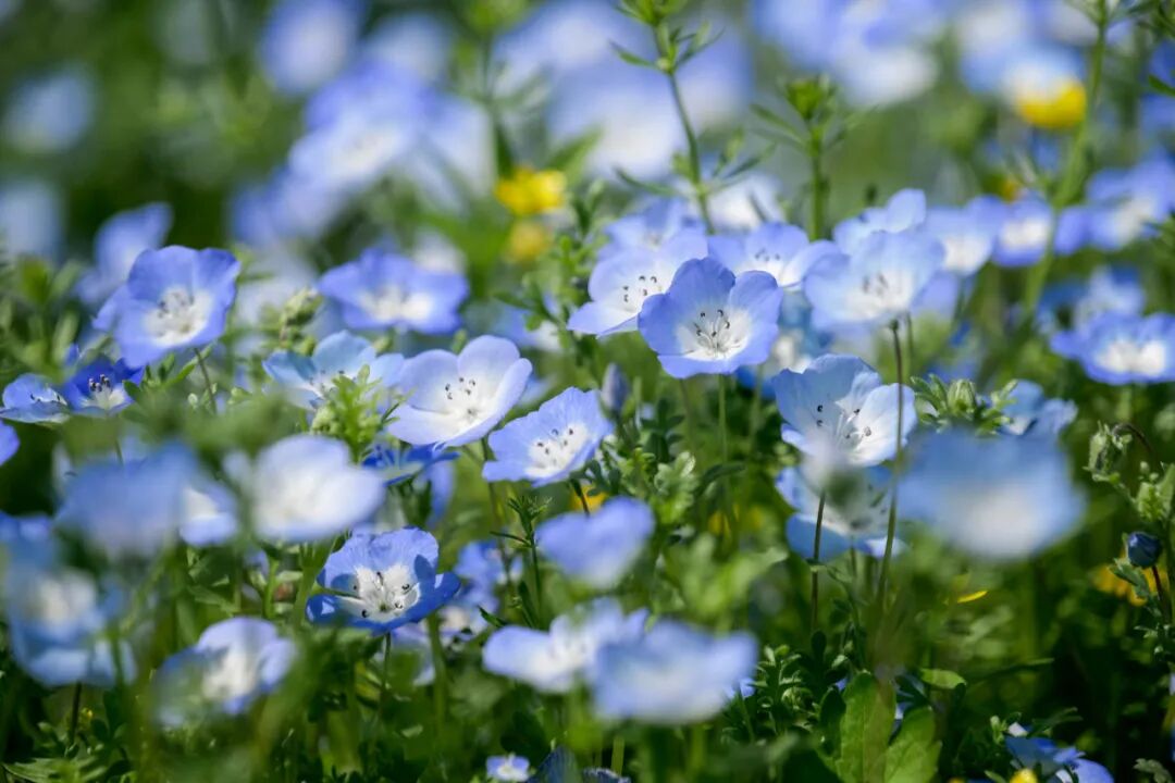 花开海上生态园内成片的喜林草花海如同复制粘贴一般把湛蓝的天空“请”到了草地间,纯净浪漫,是春日的一抹治愈清新蓝。