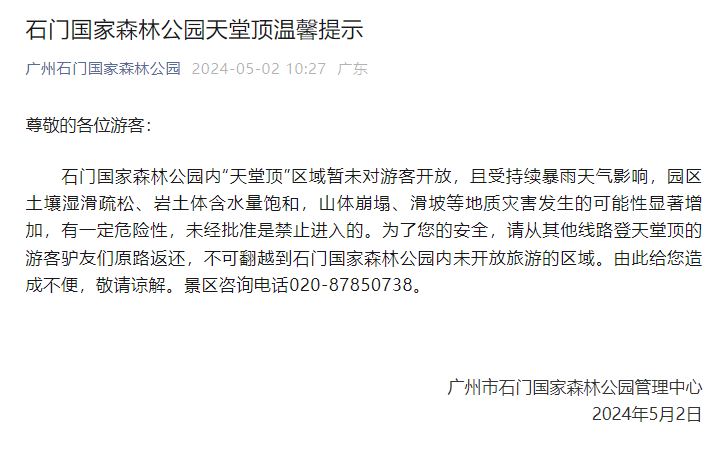 近日,广州多个景区发布临时闭园公告。