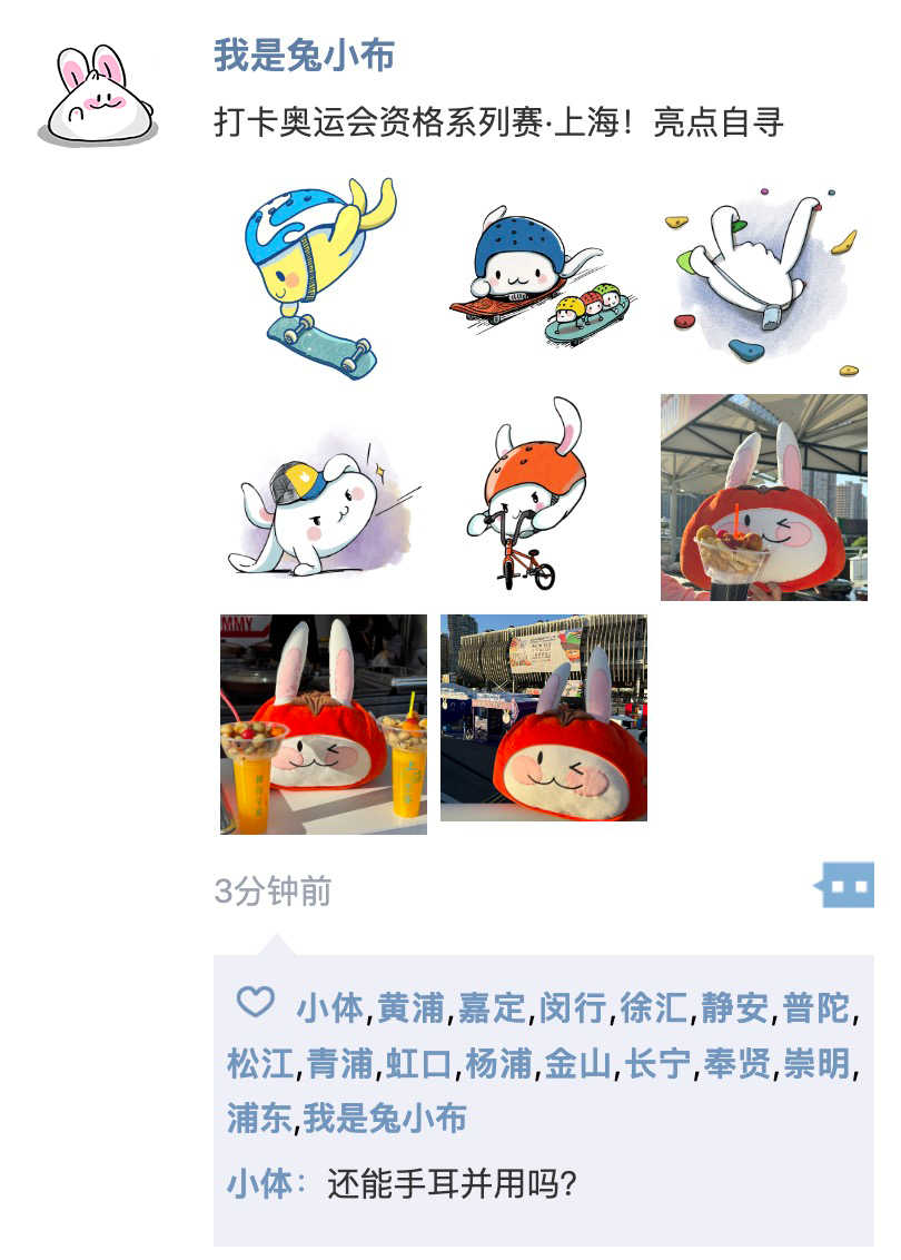 奥运会资格系列赛·上海已经开始啦!(←戳链接看小布前方探营攻略)街头运动律动申城~~你是否有打算去现场观赛?本周“上海城市映像”向大家征集#律动上海。来和小布分享你在奥运会资格系列赛·上海的有关时刻吧!(请附上“拍摄位置+相关的街头运动项目或图片说明”)~(看完天气别走开,拉到文末看小布举个例子🌰!)