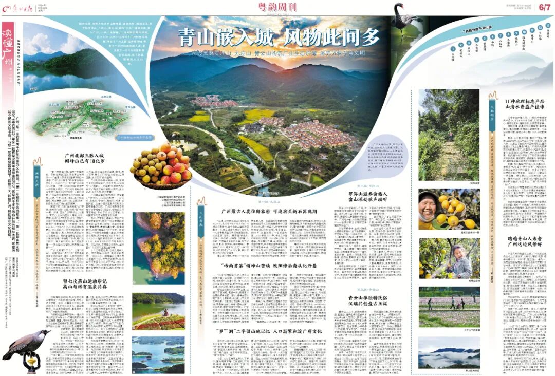 夏季,从化良口杨梅、黄场村“鸡心”黄皮、吕田枇杷、溪头村三华李等“次第新”,惹人馋。九连山下的钱岗村因光照充足,昼夜温差大,加上土壤是“潮土”,产出的钱岗糯荔枝米糍果大皮红、肉厚核小、味甜无渣,被誉为“北回归线上的明珠”,老广纷纷寻味而来。钱岗糯米糍则开创了广州荔枝地理标志保护先河,增城荔枝、增城挂绿、增城糯米糍、增城桂味等也陆续成为地理标志产品。秋季,良口桂峰村的鸡心柿皮薄肉多、清甜多汁,被誉为“柿外桃源”。增城白水山则有谷粒细长的丝苗米。白水山下的丹邱村是丝苗米发源地,一到秋天,万亩稻田一片金黄。站在村口,白水瀑布跃入眼帘。屈大均在《广东新语》云:“增城山顶有瀑布形如白练,故名泉山。”“泉”字拆开即“白水”。