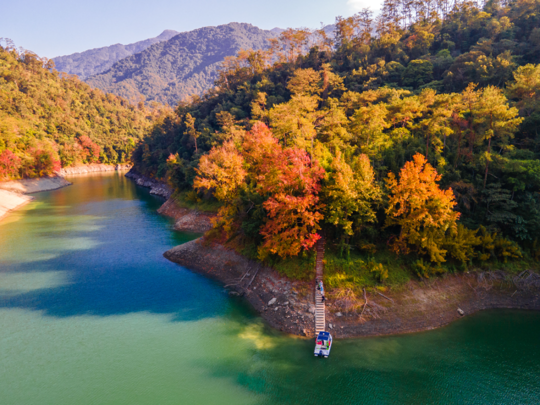 冬日,广州北部流溪河畔的红叶迎来最佳观赏期。