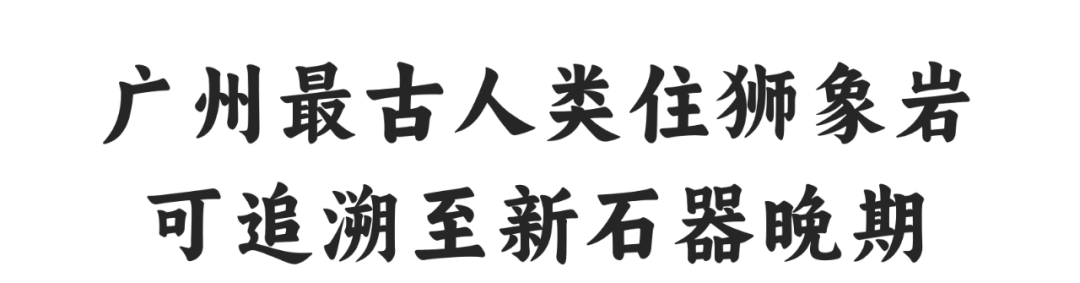 青山涌出清泉,养育了广州已知最早的人类。北部山脉环抱的狮象岩遗址位于从化吕田镇狮象村以西约500米,是一座山丘,内有天然石灰岩溶洞,因形似狮、象而得名。1984年,这里发现了一石质刮削器。2002年至2003年,考古工作者对遗址进行发掘,出土石锛、石镞、石环等一批石器以及罐、釜、陶器。这些器物显示,早在新石器晚期就有先民在狮象岩生活。他们在手臂上佩戴石环为饰,可以说是手镯的雏形。