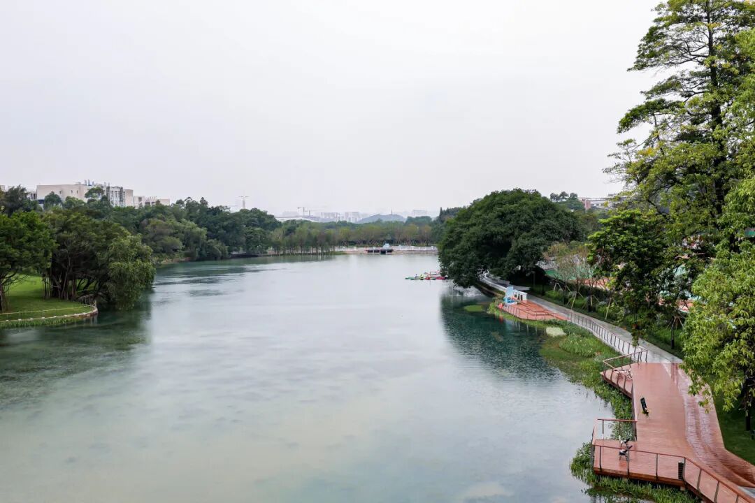 今年2月,率先完成治理的月亮湖掀起万人到访,世界大观再次成为城中热点。5月17日,越秀·观樾官宣太阳湖将于5月25日正式对外开放。至此,原世界大观月亮湖和太阳湖总计达约5.3万平方米的水域连成一片,“两湖一谷”格局显现。曾经的城市乐园,正式蜕变成为湖水清澈、两岸移步换景的生态景观。