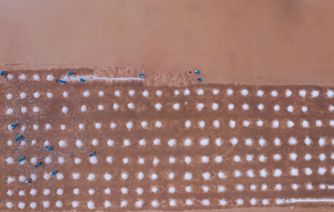 4600多年前,人们在这里晒盐、运往各方,“盐运之城”运城二字便因此而生。盐池总面积超过100平方公里,仲夏时节,人们从解池引水至盐洼,当南风大作时,一天一夜便会生出盐花。当地人管它叫“种盐”,千百年来,传统未曾改变。