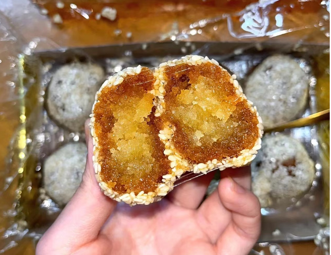 闻喜煮饼在山西有着“饼点之王”的美誉。运城人常把“炸”就叫“煮”,煮饼里包上馅料,外边沾满了白芝麻,吃上一口能拉出长长的细丝,甜到心坎里。