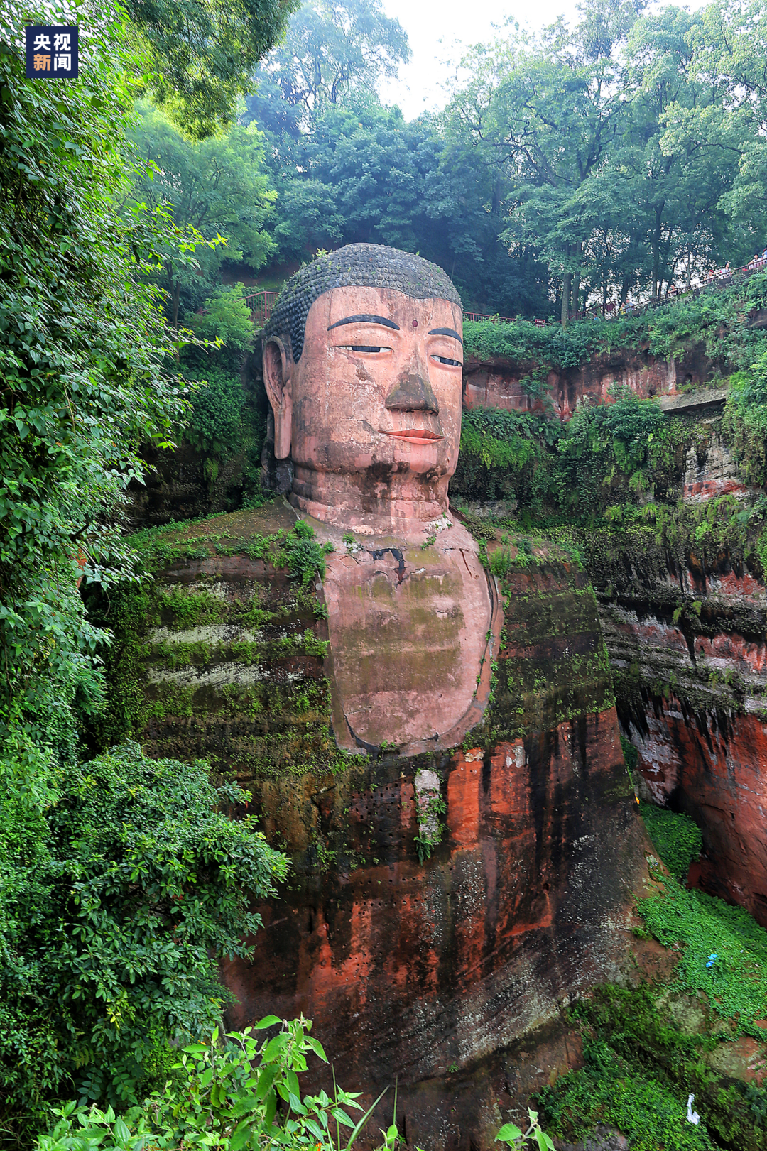 乐山大佛通高71米,是世界上现存最高最大的古代摩崖石刻佛像。