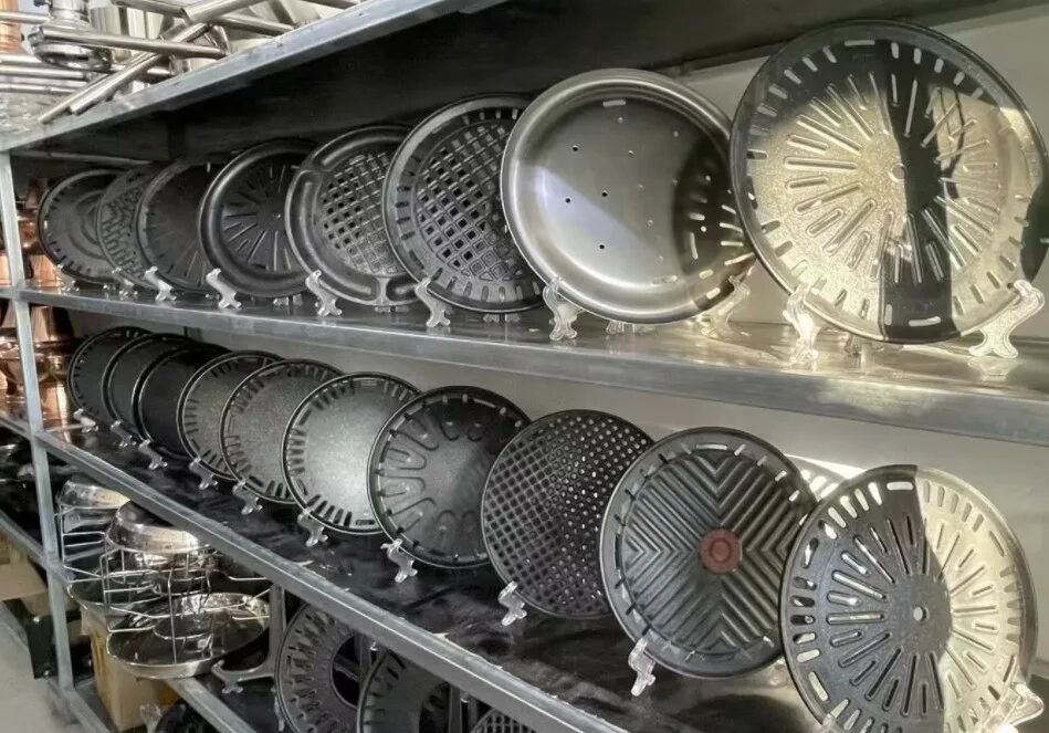 齐齐哈尔烤肉的第一代烤盘就是用工厂废料在车床上车出来的,爱较真的师傅还会在工作之余琢磨烤炉材质、烤盘形状、凹槽位置、孔距大小。